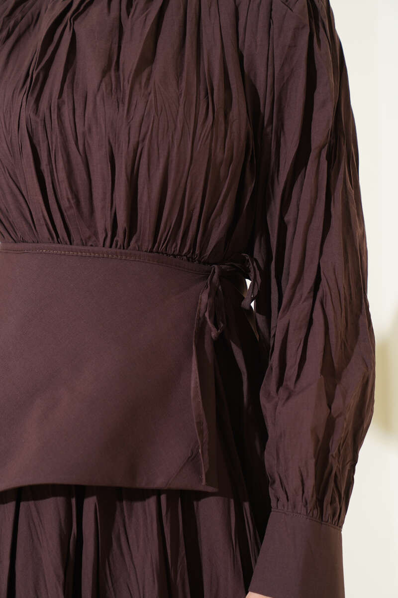Kol Ucu Armalı İp Bağcıklı Elbise Kahve