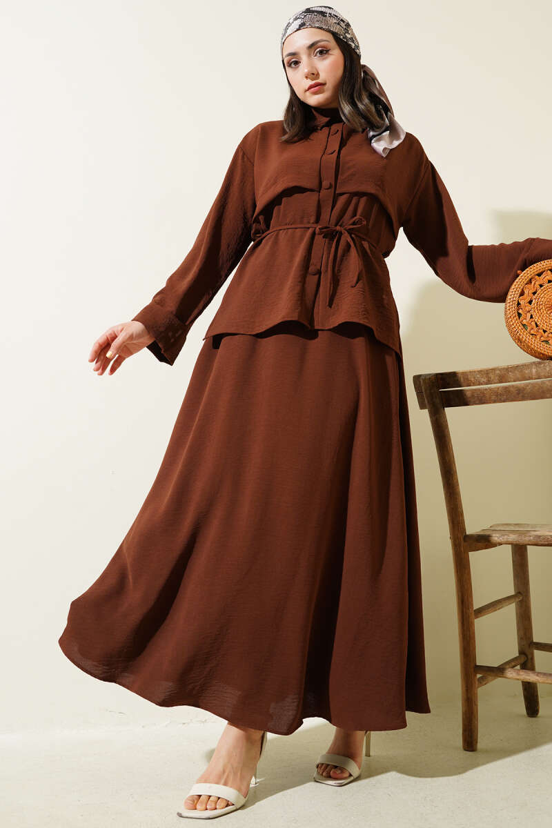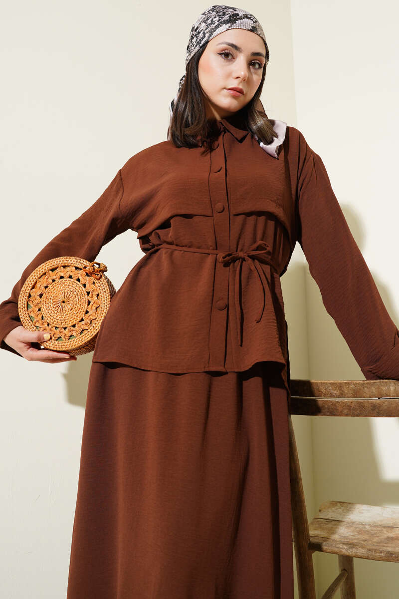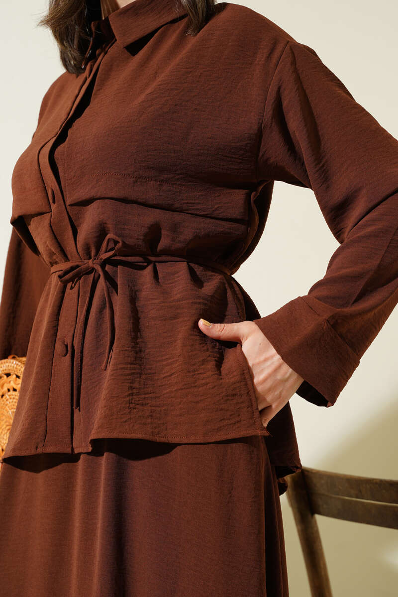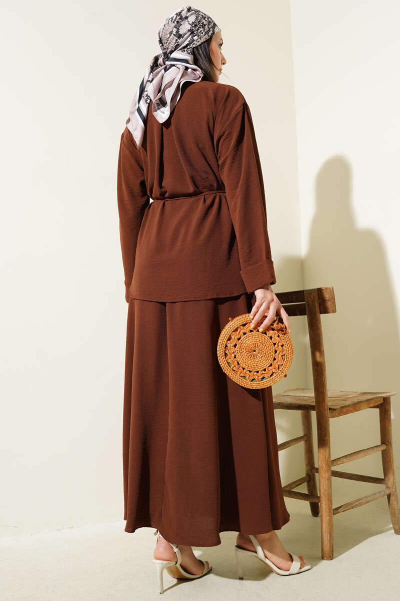 Asimetrik Kesim Bisiklet Yaka İkili Takım Kahve