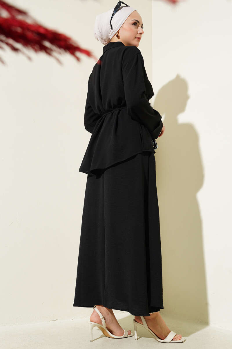Parça Detaylı Kuşaklı Etekli Ayrobin Takım Siyah