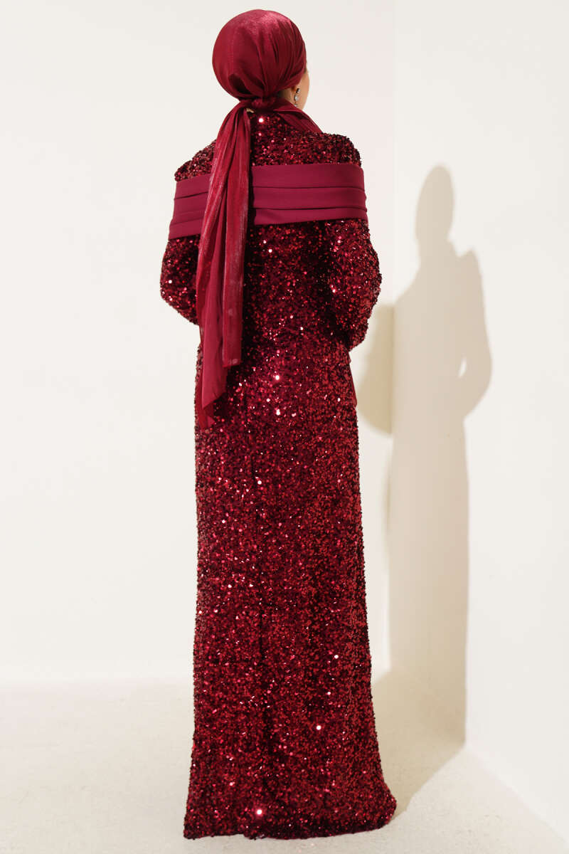 Pelerin Detaylı Pul Payet Abiye Elbise Bordo