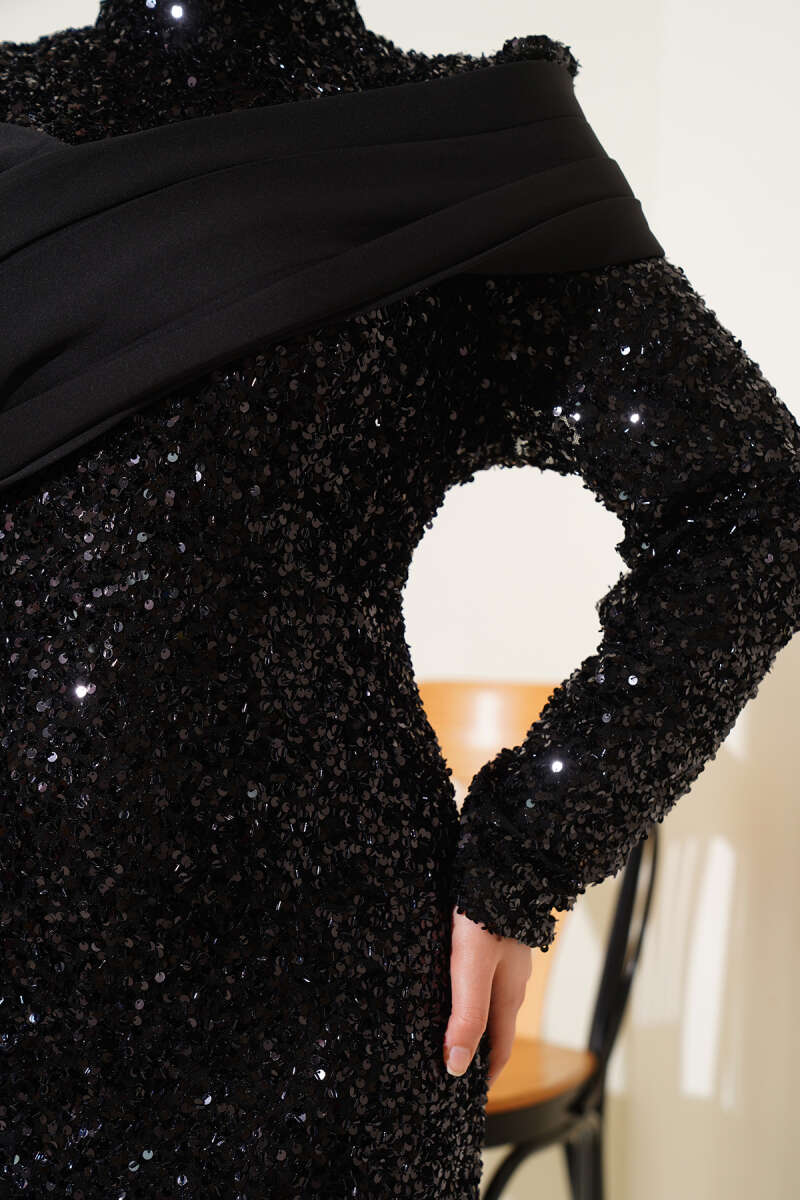 Kolları Fiyonk Detaylı Selanik Elbise Taş
