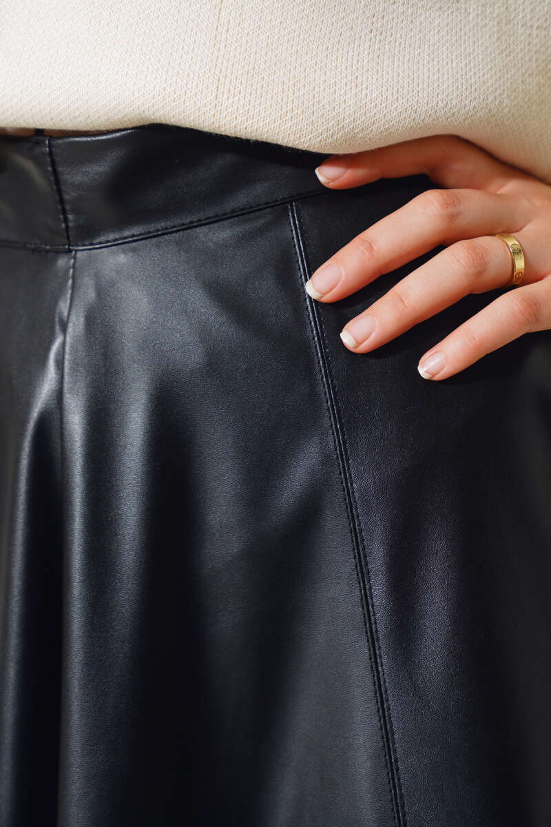 Saten Görünümlü Pileli Etek Lacivert