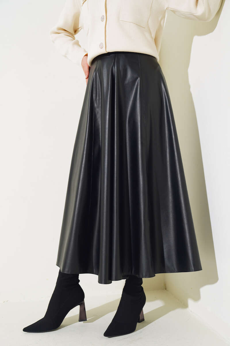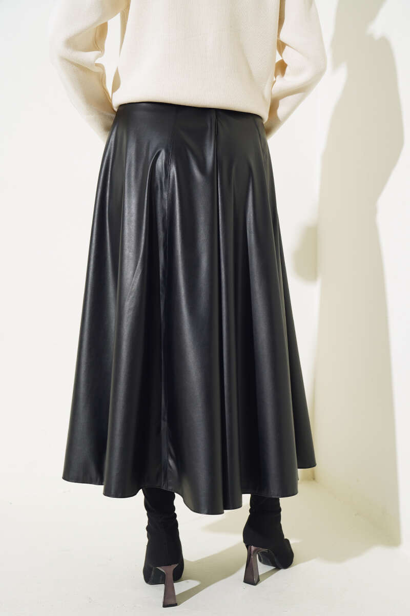 Saten Görünümlü Pileli Etek Bordo