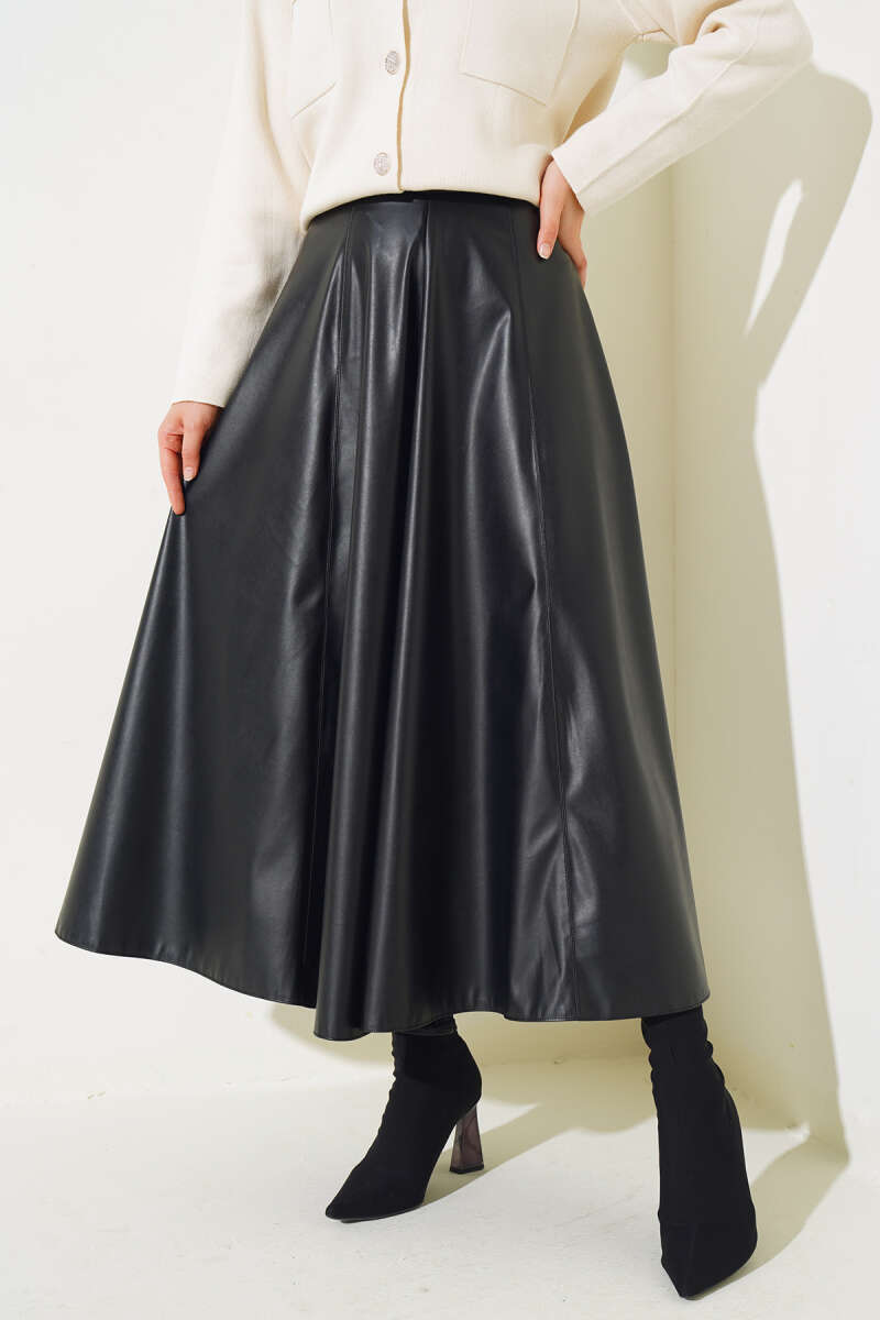 Saten Görünümlü Pileli Etek Bej