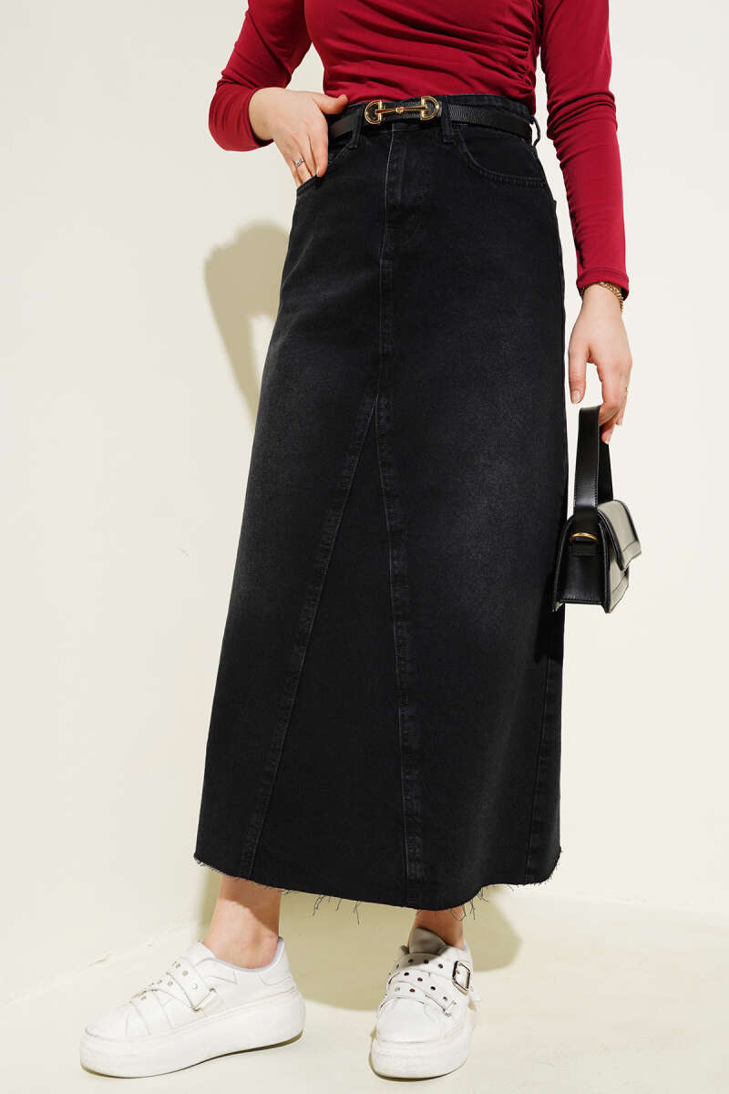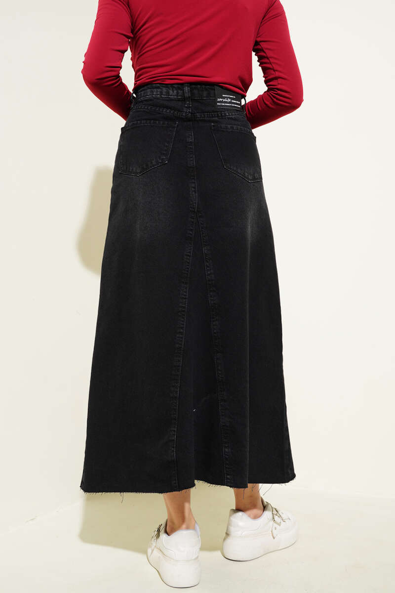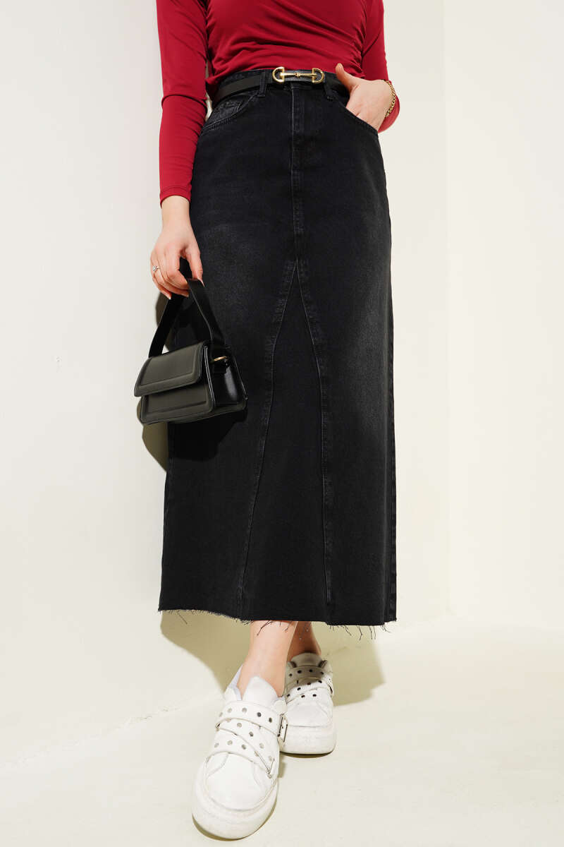 Dikişli Fitilli Kaşe Etek Siyah