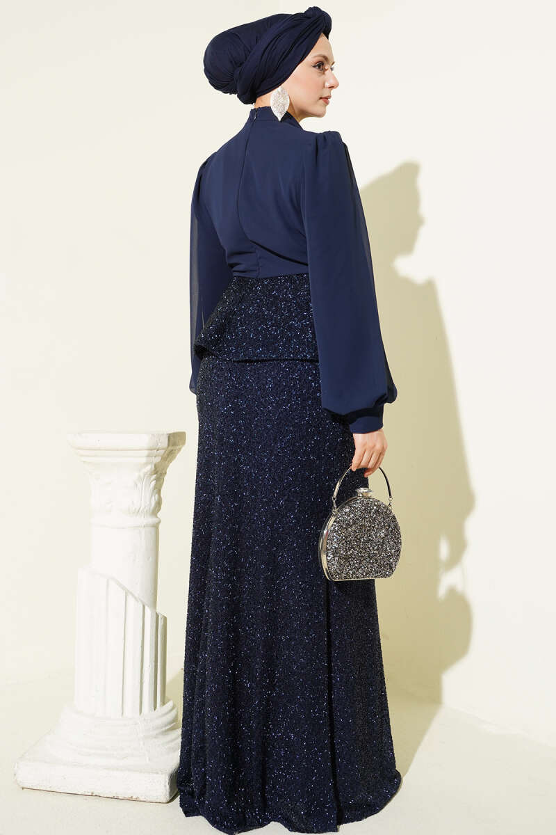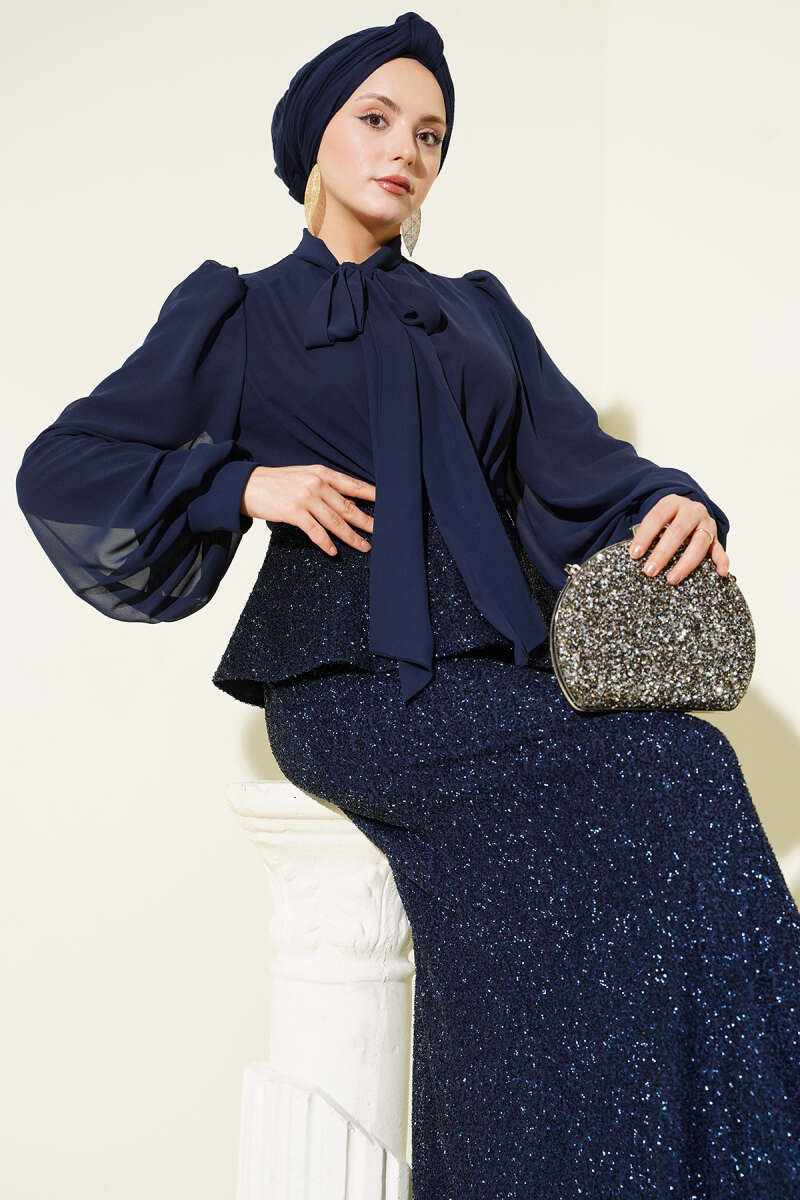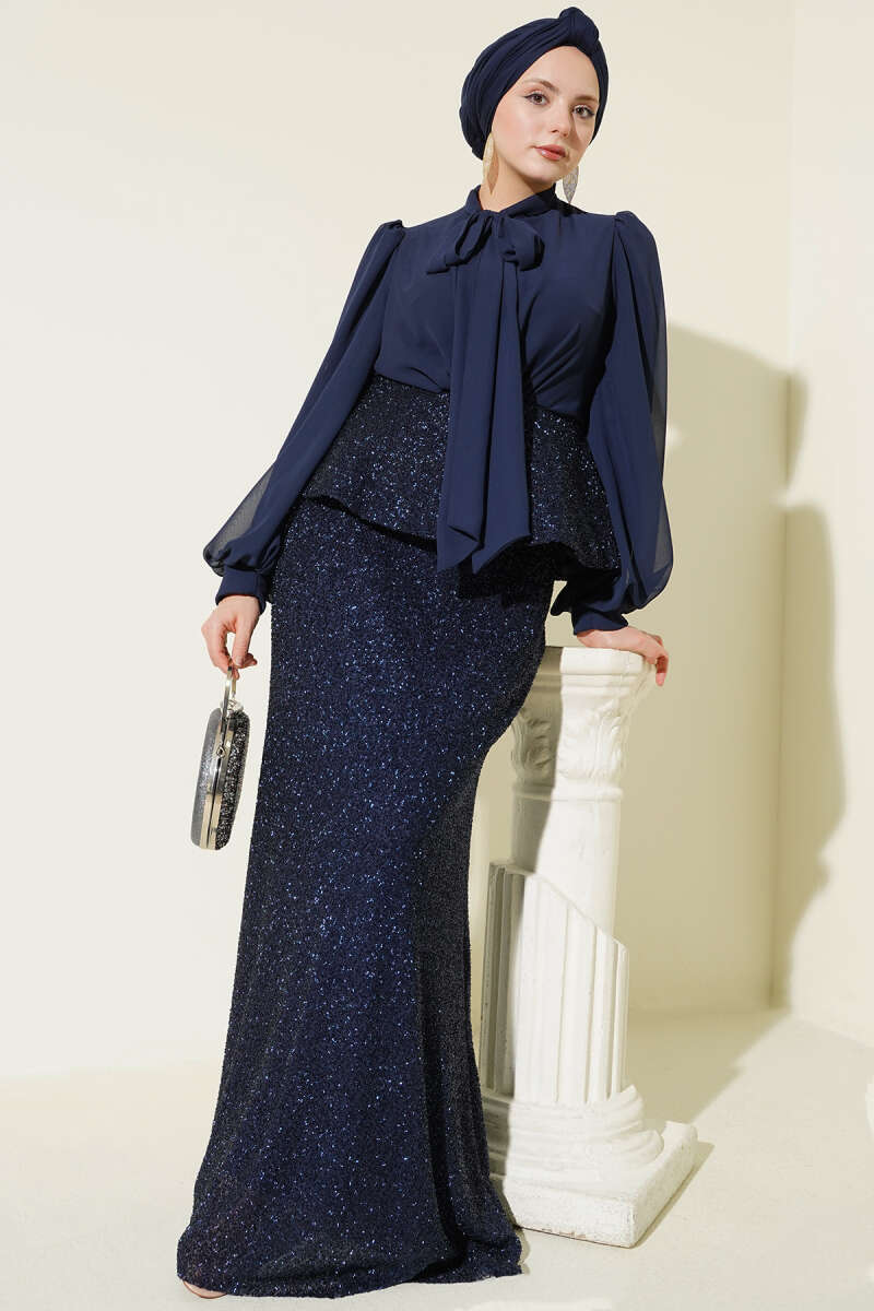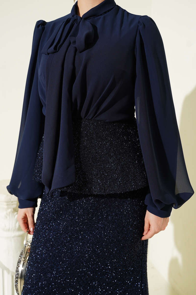 Parlak Pul Detaylı Abiye İkili Takım Lacivert