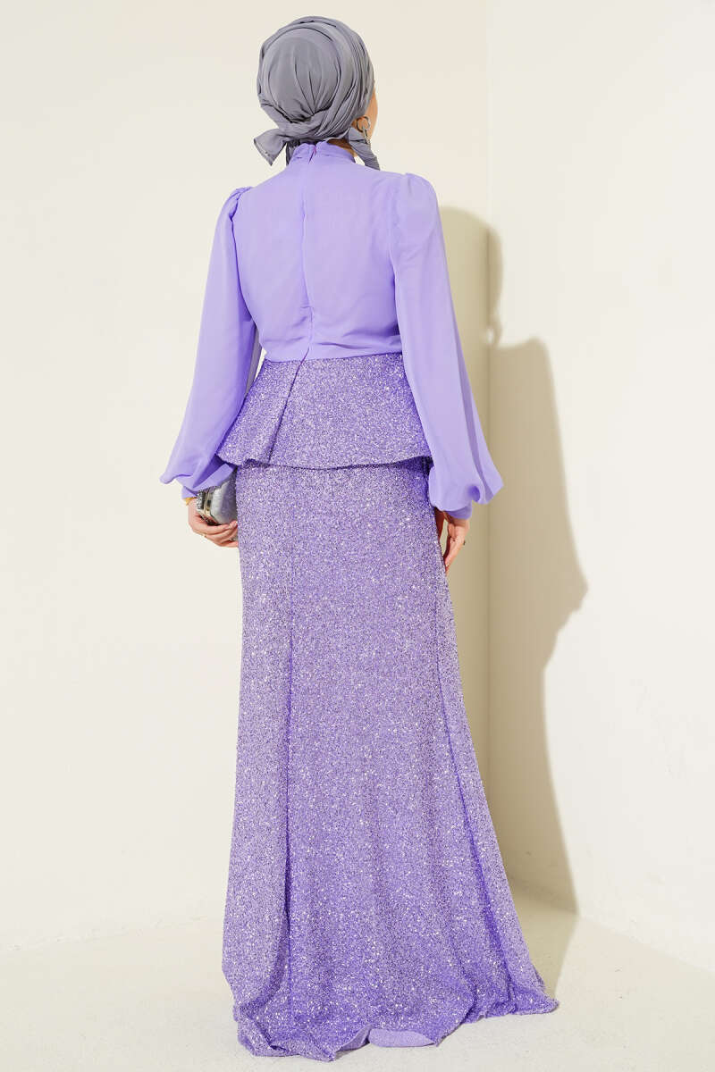 Parlak Pul Detaylı Abiye İkili Takım Kahve