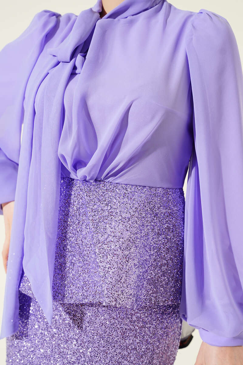 Parlak Pul Detaylı Abiye İkili Takım Mavi
