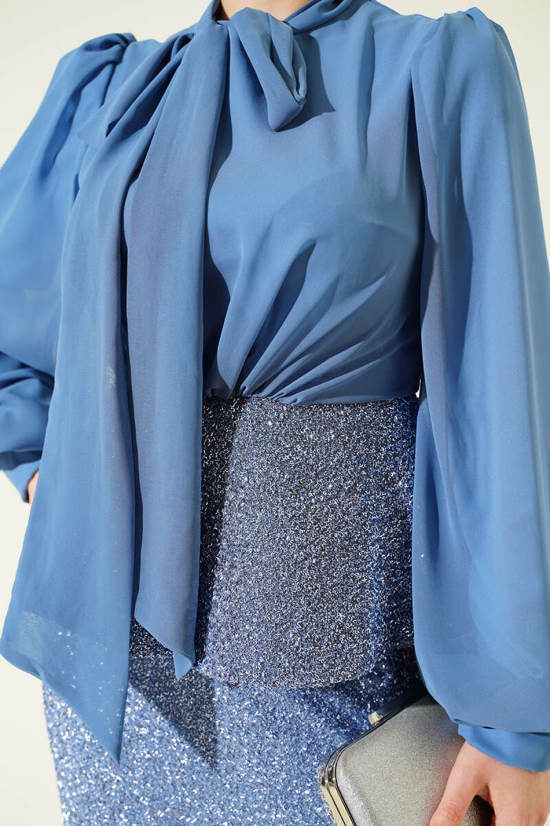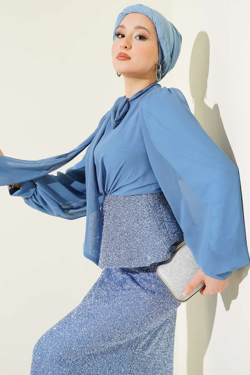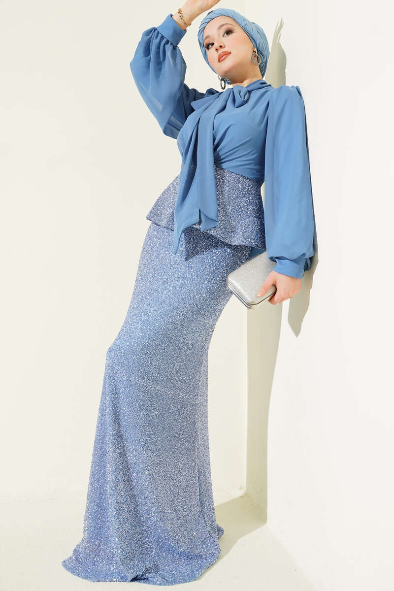 Parlak Pul Detaylı Abiye İkili Takım Mavi