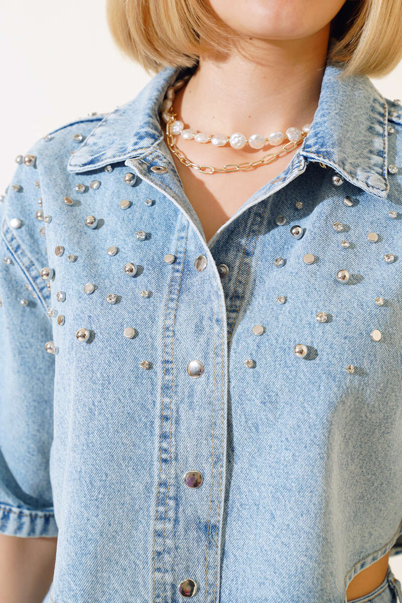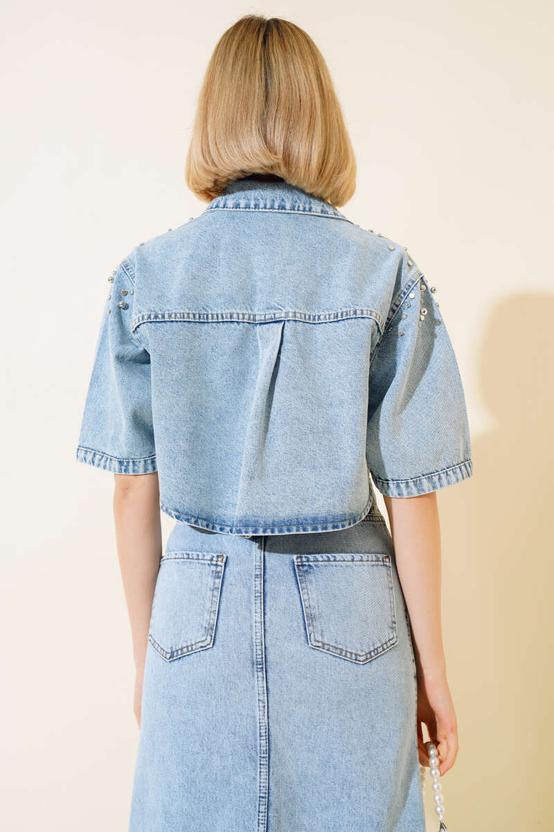 Ürün BilgisiBoy: 40 cmGöğüs: 110 cmBel: 110 cmYeni sezon ceket modelimiz sizlerle beraber. Ceketimizin omuzu ve önü parlak taşlarla süslenmiştir. Düşük omuzludur. Önü boydan çıtçıt düğmelidir. Salaş modeldir. Hem şık hem sportif kombinlerinizin favori parçası olacaktır.Kumaş Bilgisi%100 CottonModel BilgisiBoy : 170 cmGöğüs : 86 cmBel : 64 cmKalça : 93 cmModelin üzerindeki ürün - S - bedendir.