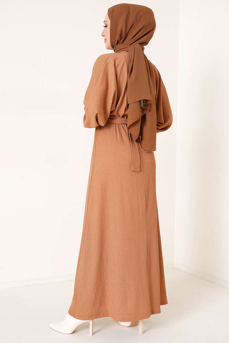 Bel Pensli İp Kuşaklı Elbise Kahve