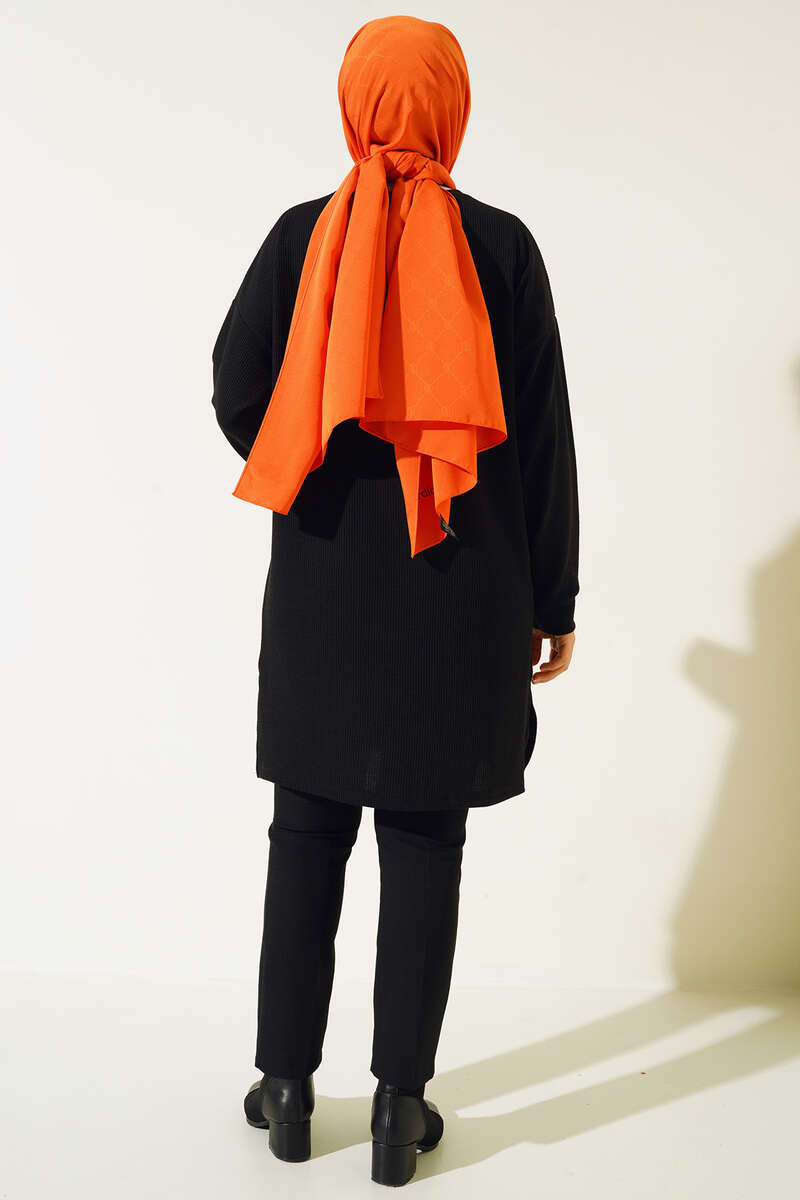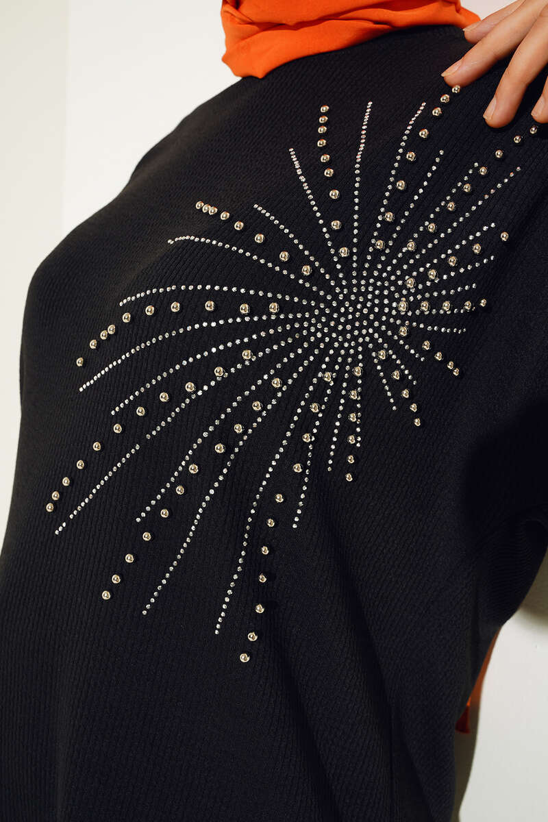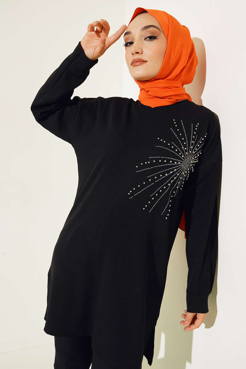 Parlak Taşlı İnce Fitilli Tunik Siyah
