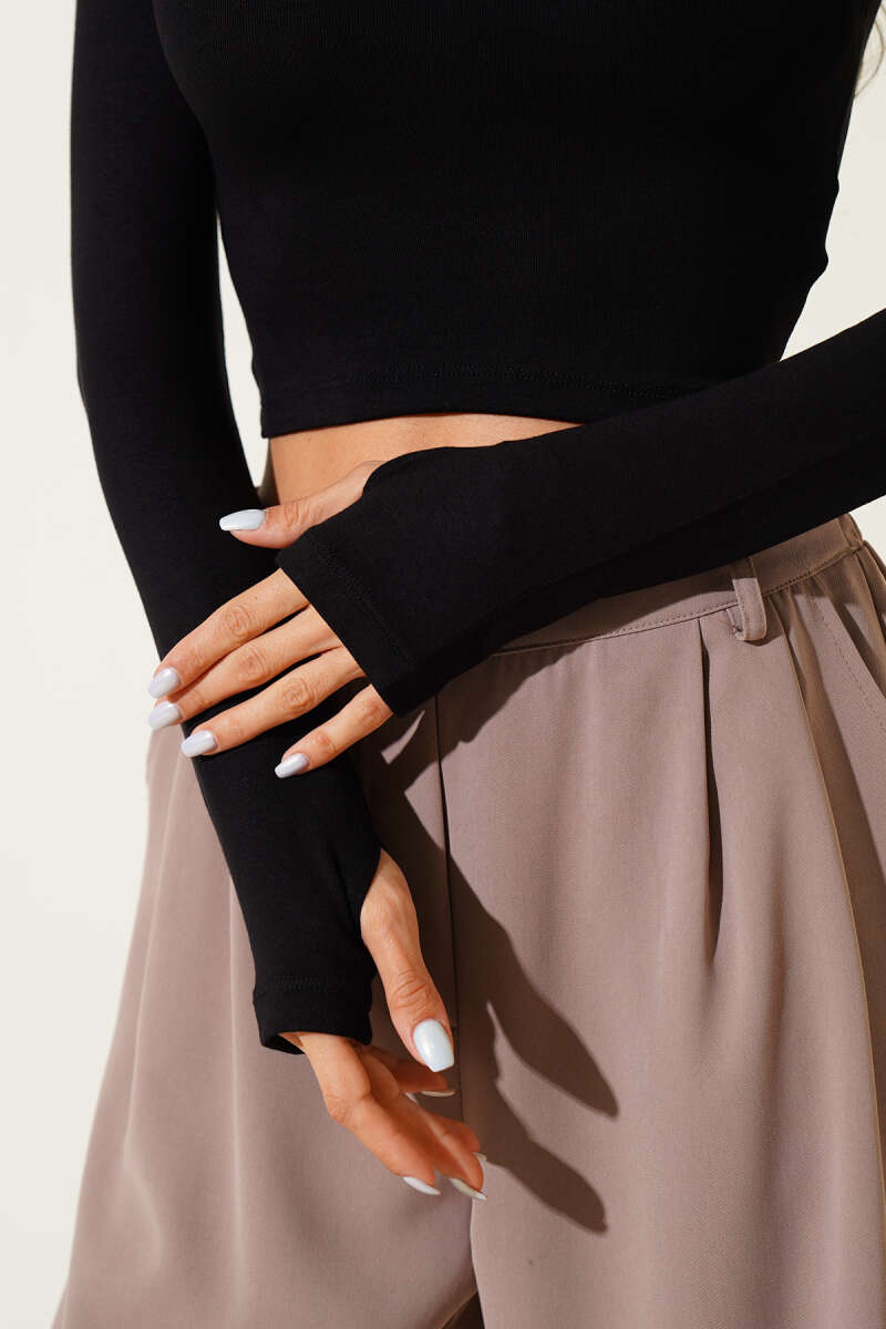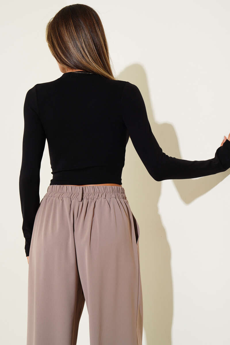 Çoban Dikiş Detaylı Triko Tunik Siyah