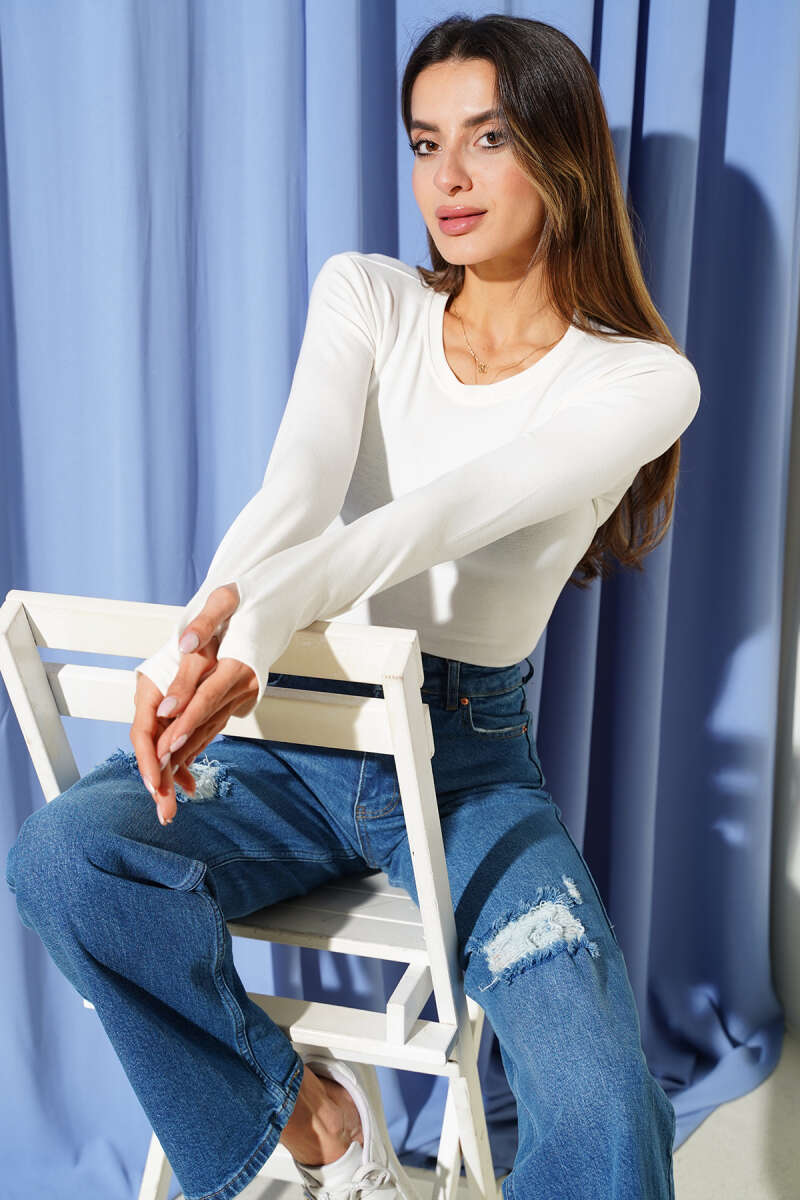 Parmak Geçirmeli Bisiklet Yaka Body Ekru