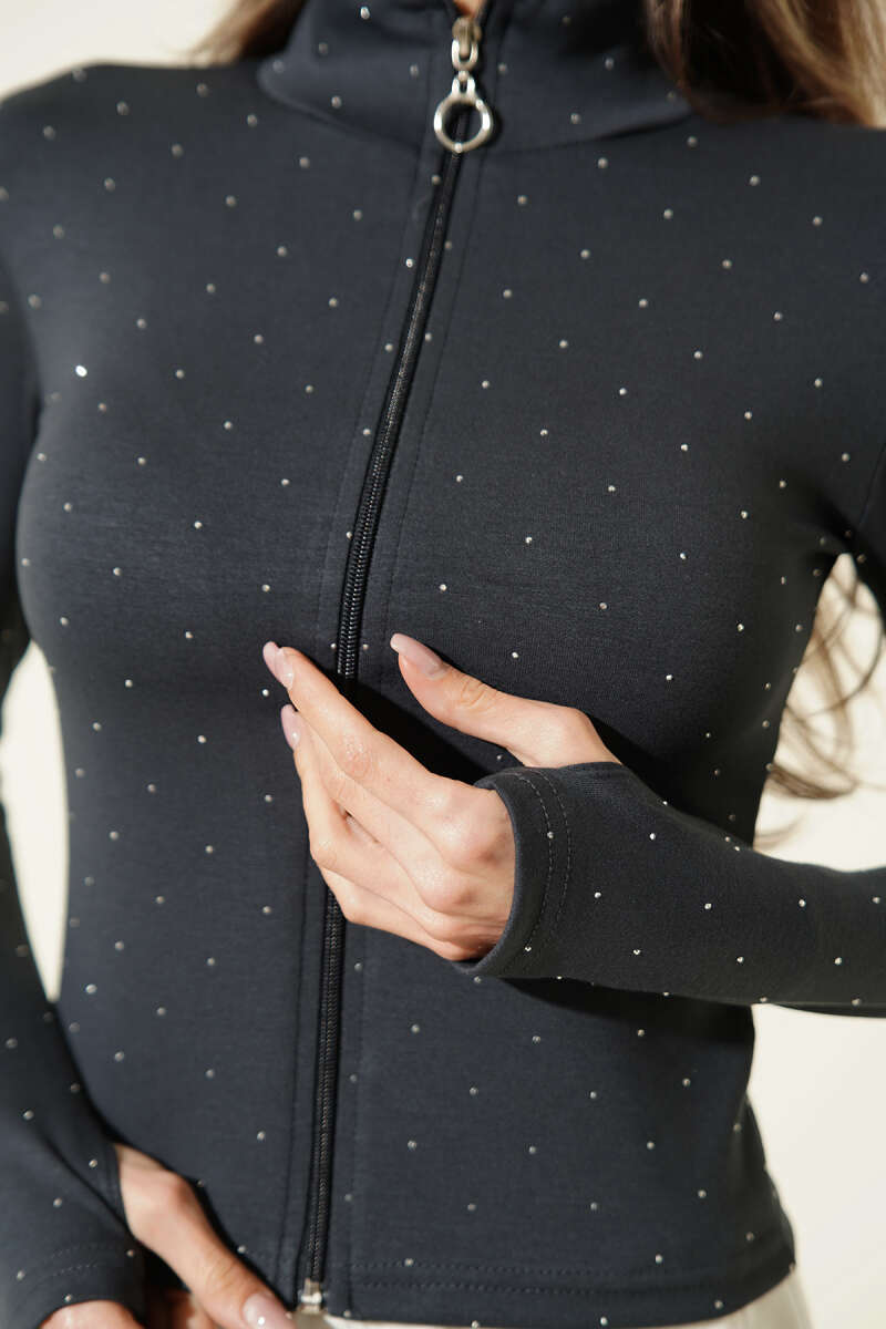 Parmak Geçirmeli Taşlı Hırka Antrasit