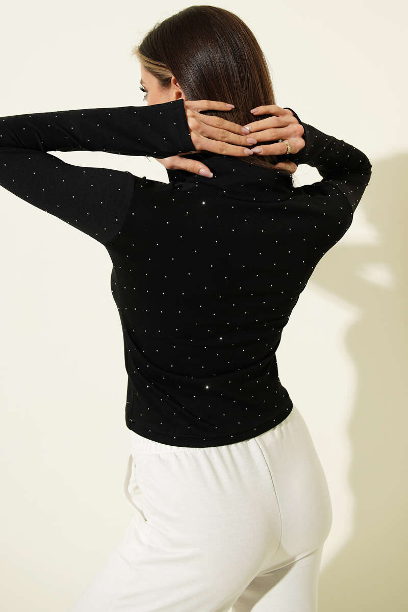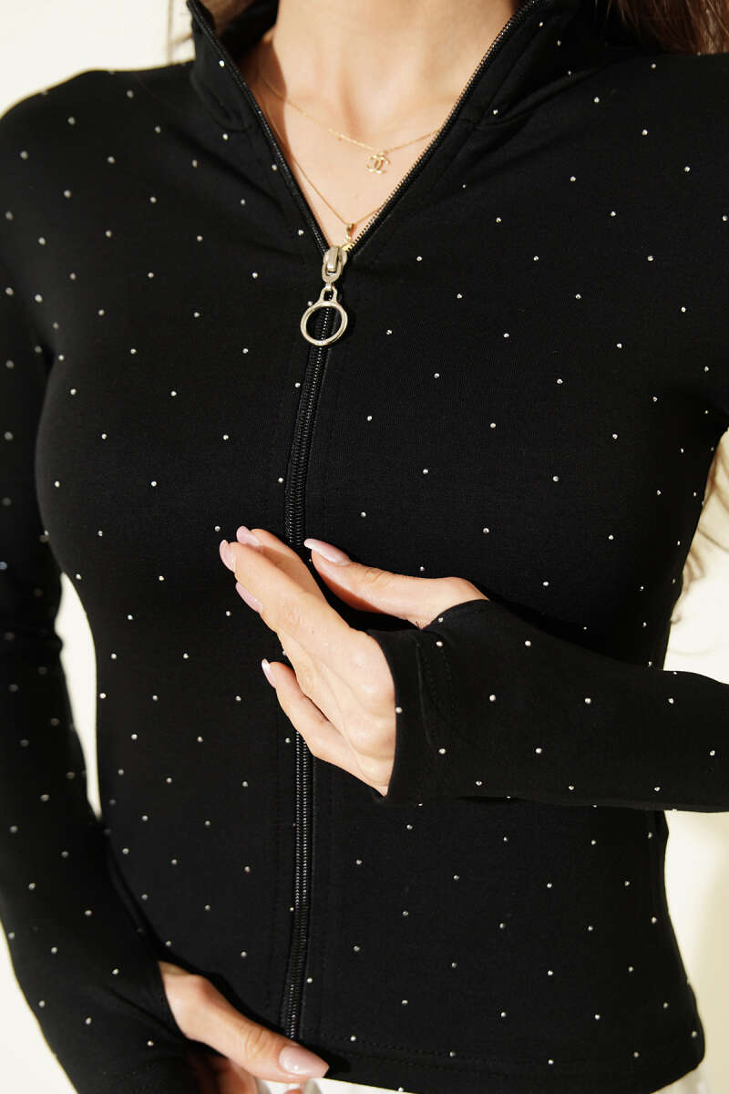 Parmak Geçirmeli Taşlı Hırka Siyah