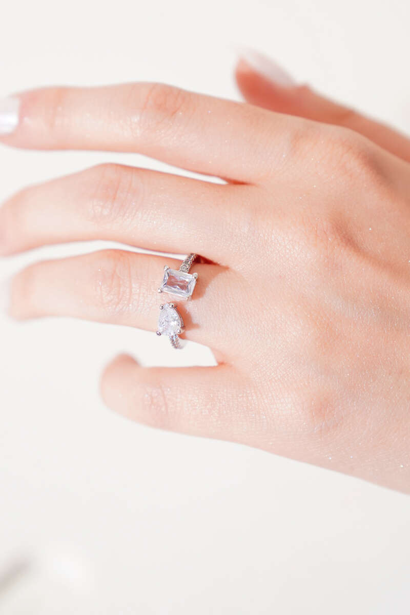Parlak Taşlı Ayarlanabilir Yüzük Gümüş