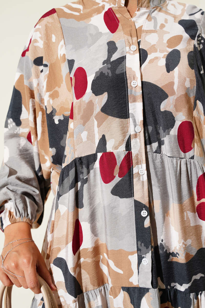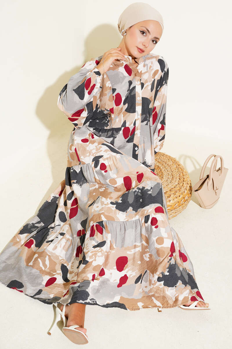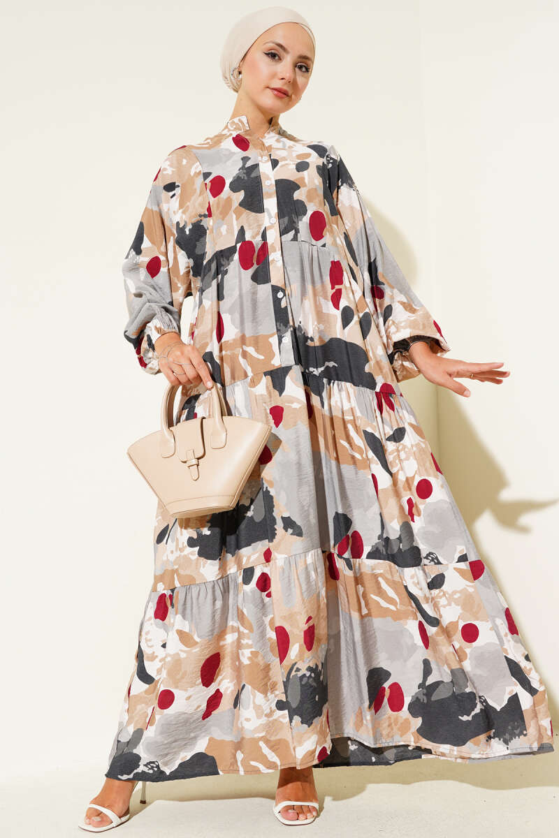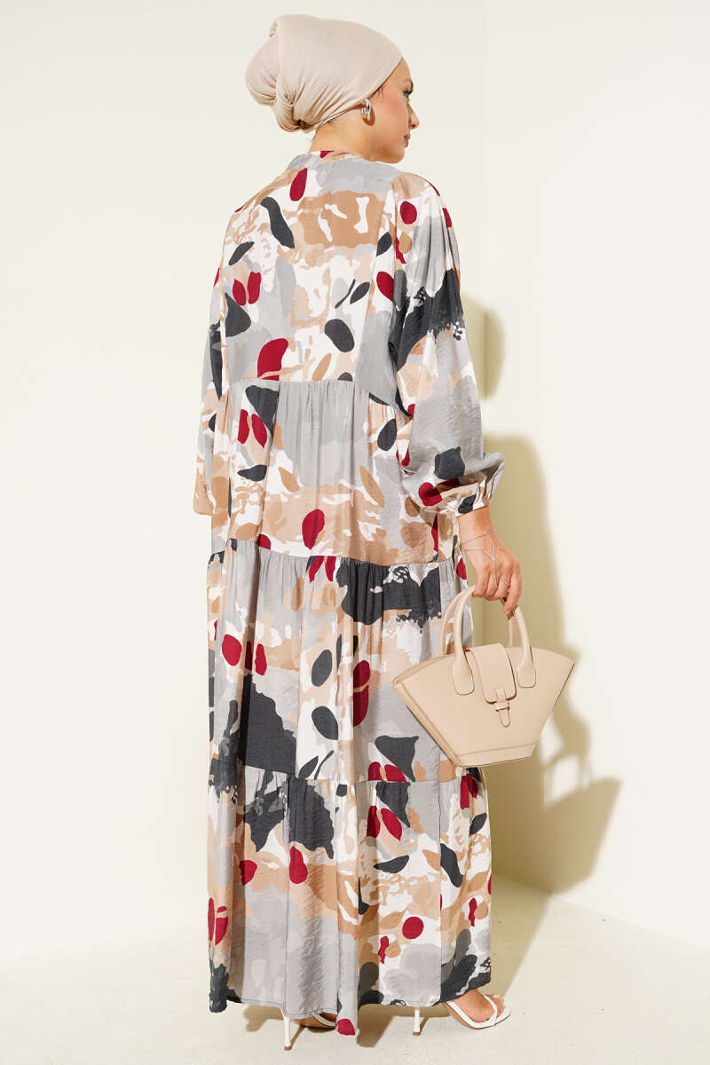 Çiçek Motifli Tül Pelerinli Abiye Elbise Bordo