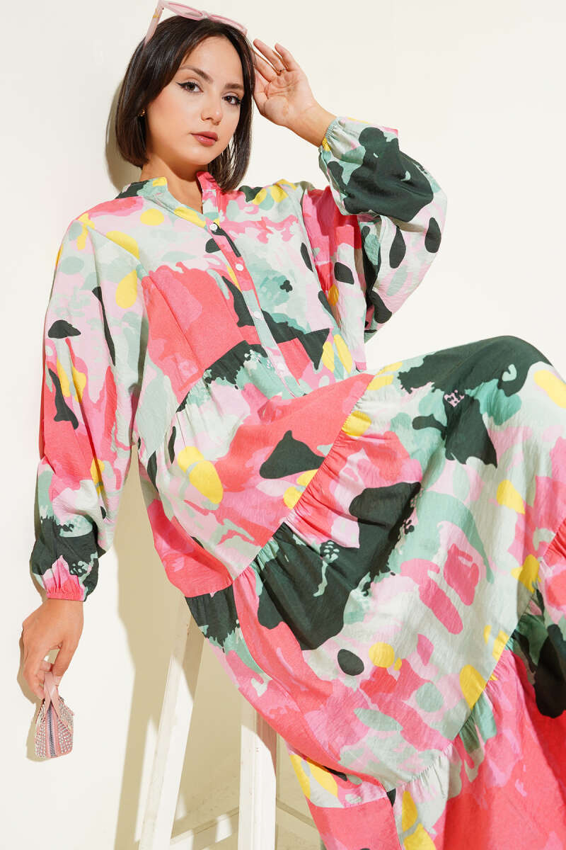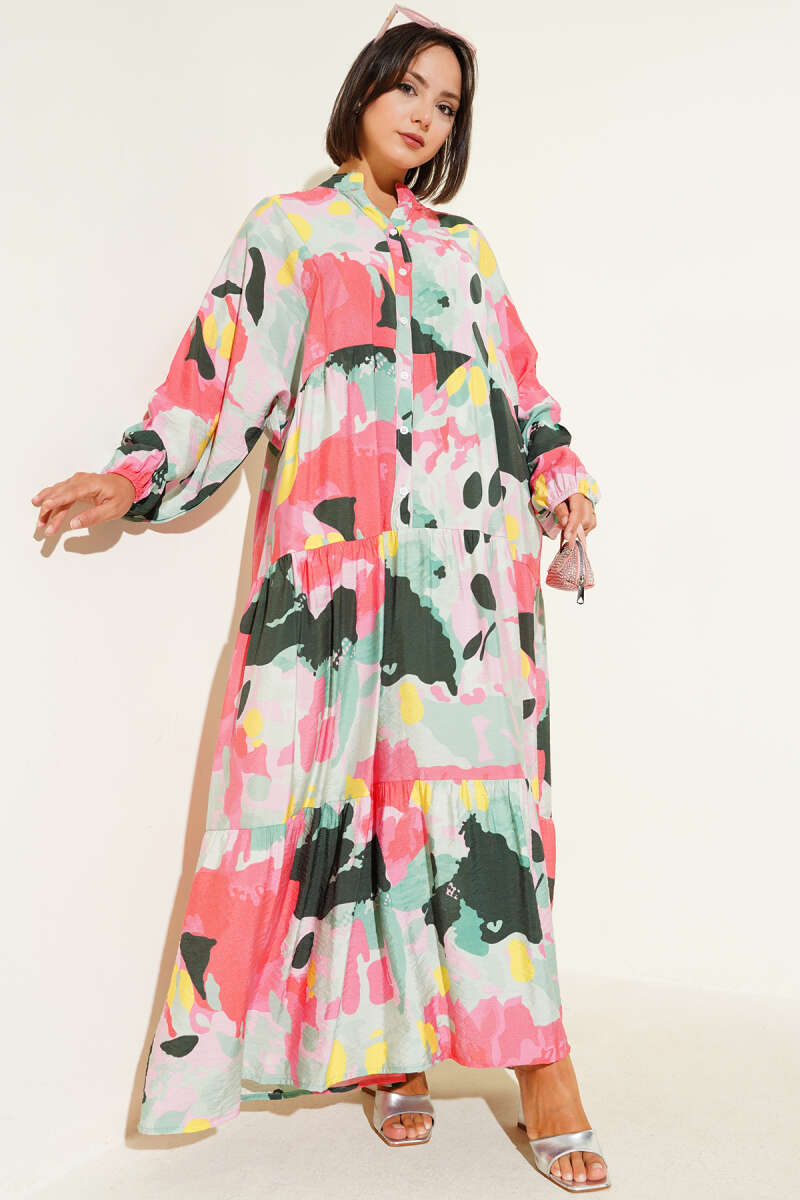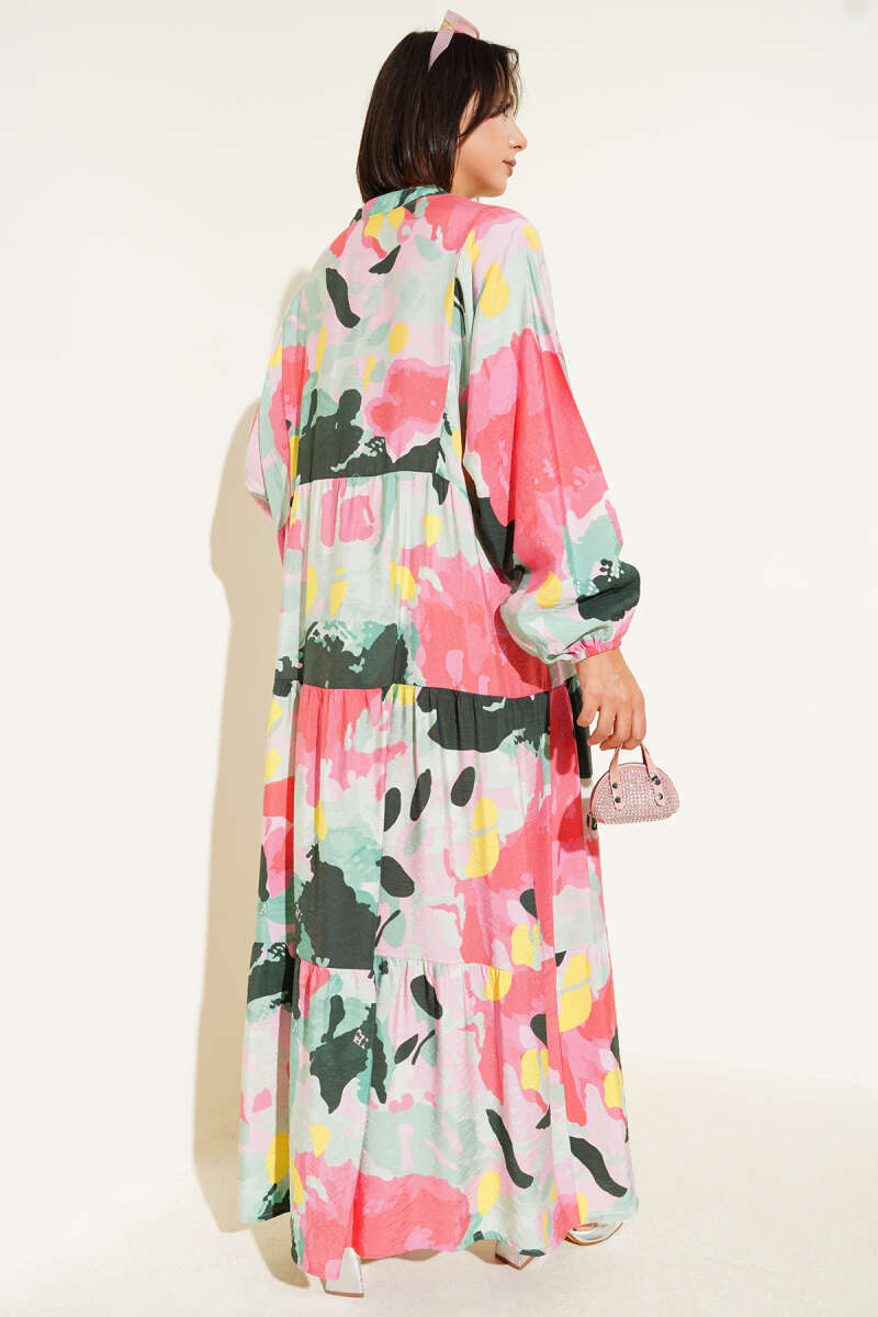 Çiçek Motifli Tül Pelerinli Abiye Elbise Bordo
