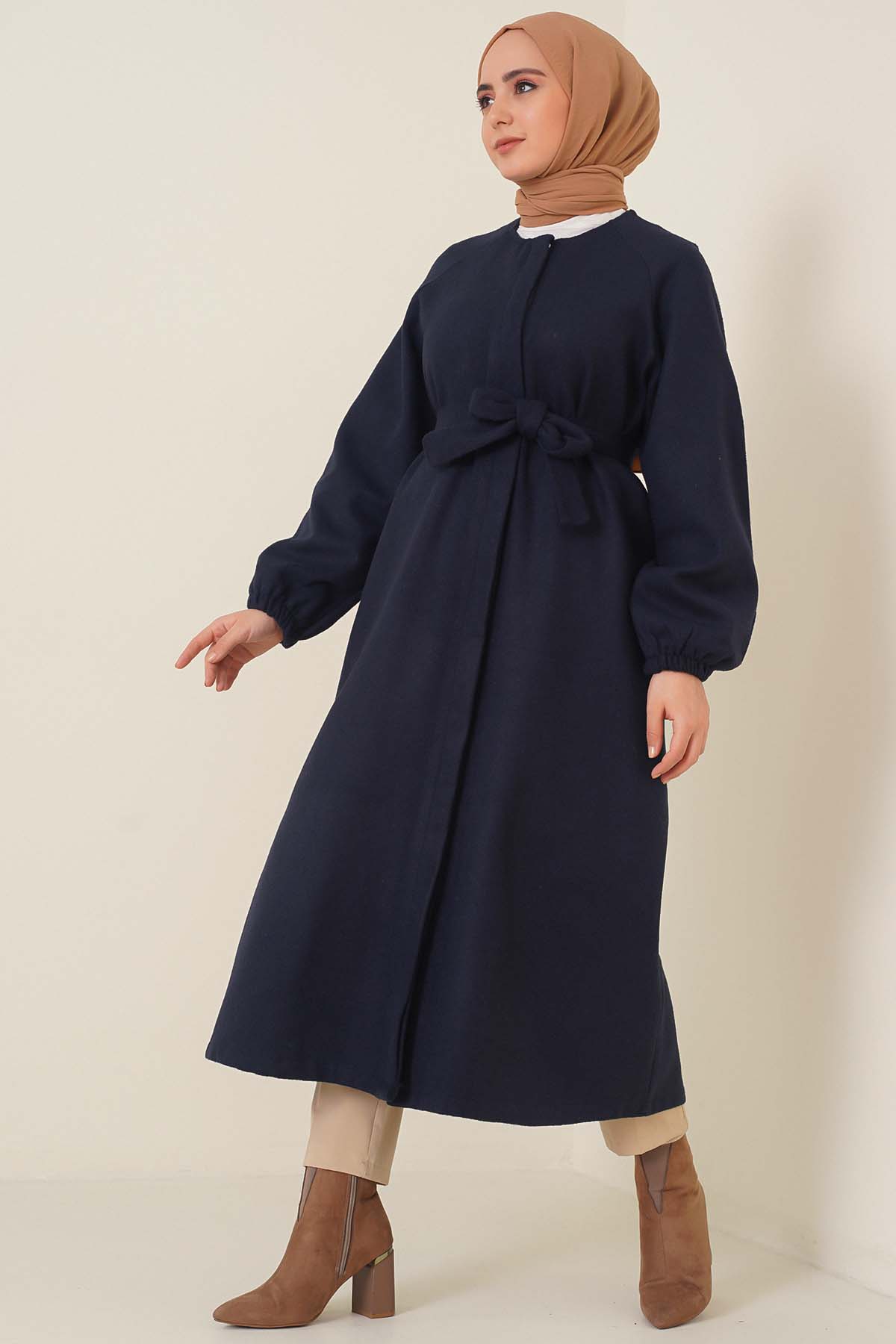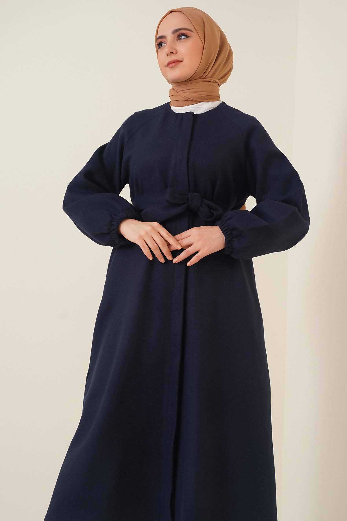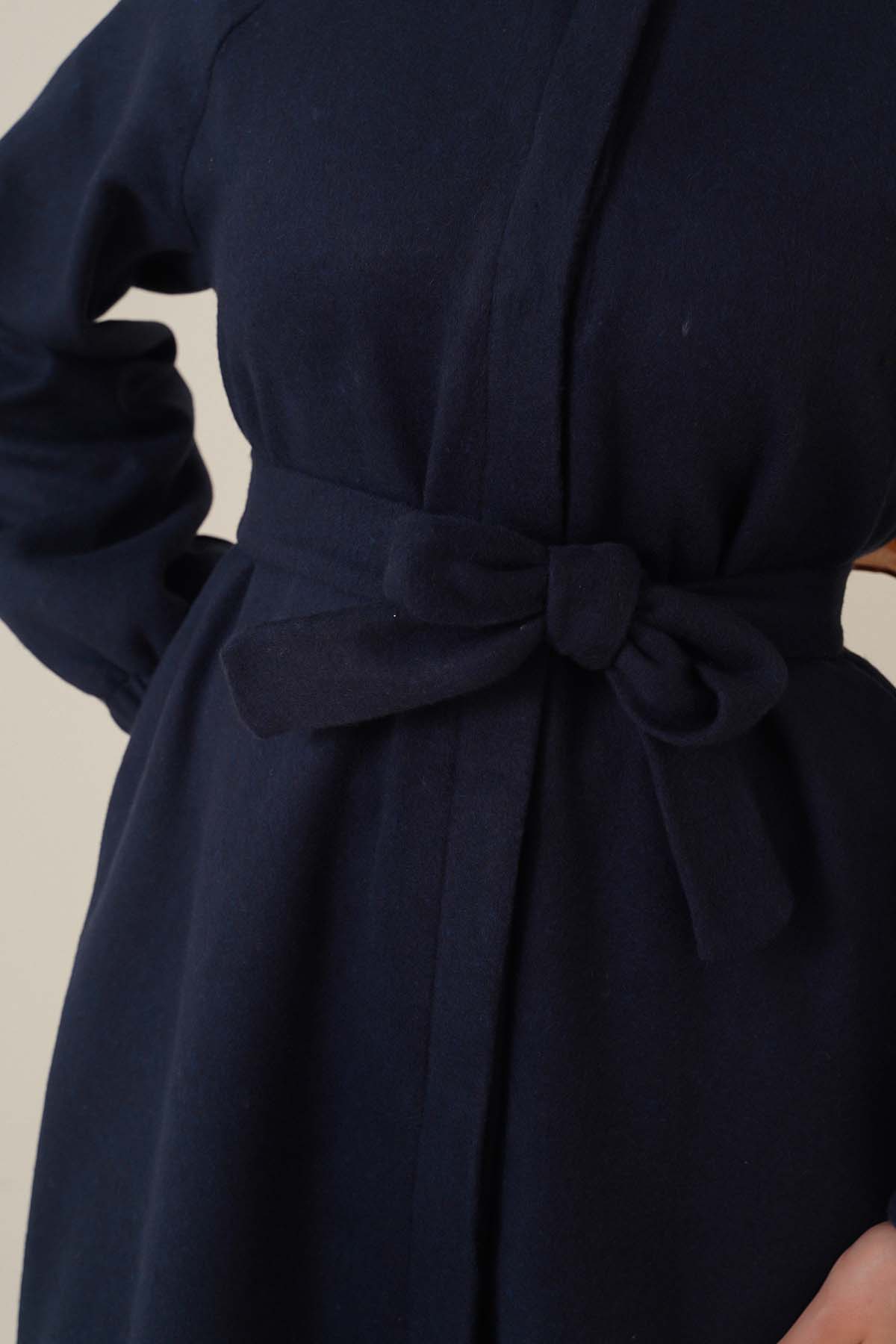 Patlı Düğmeli Kaşe Kaban Lacivert
