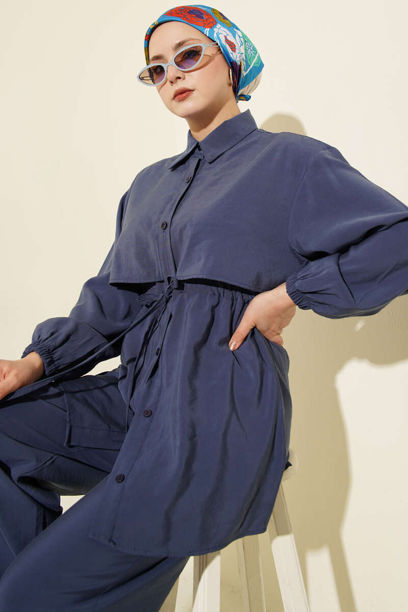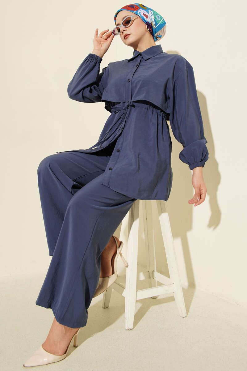 Pelerin Bel Tünelli Modal İkili Takım Lacivert