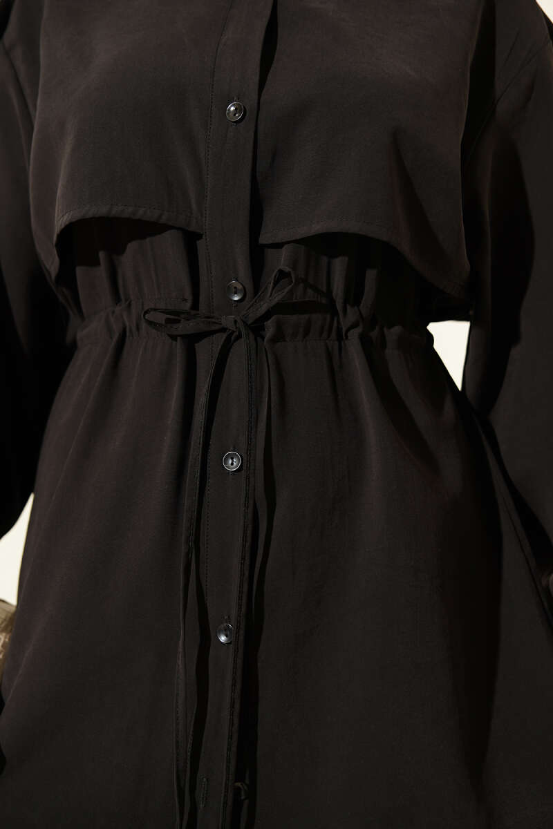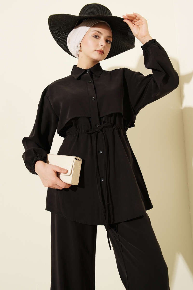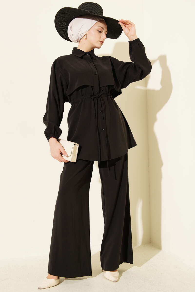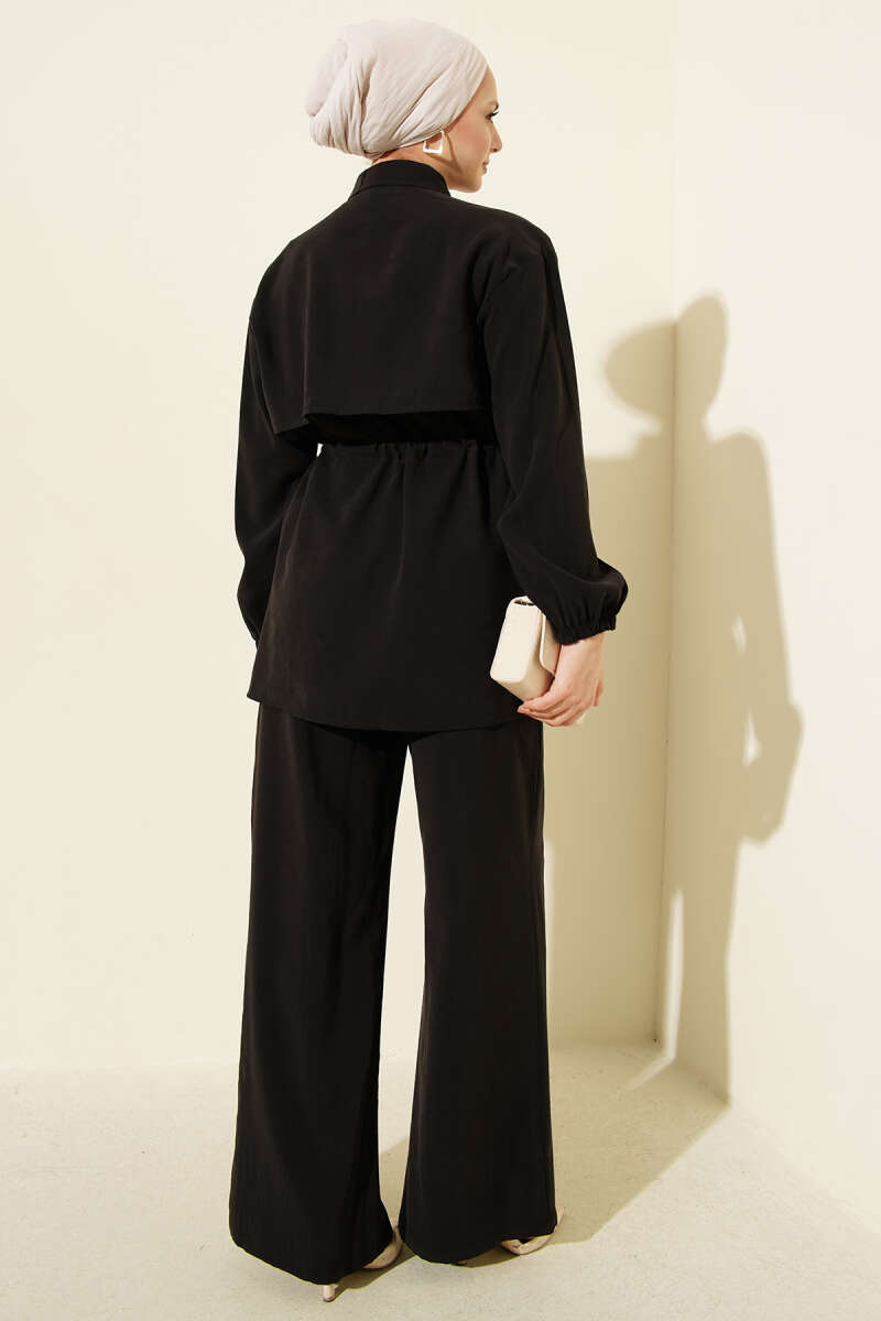 Pelerin Bel Tünelli Modal İkili Takım Siyah