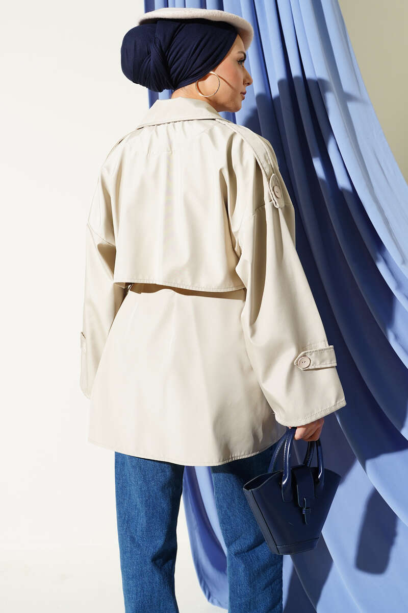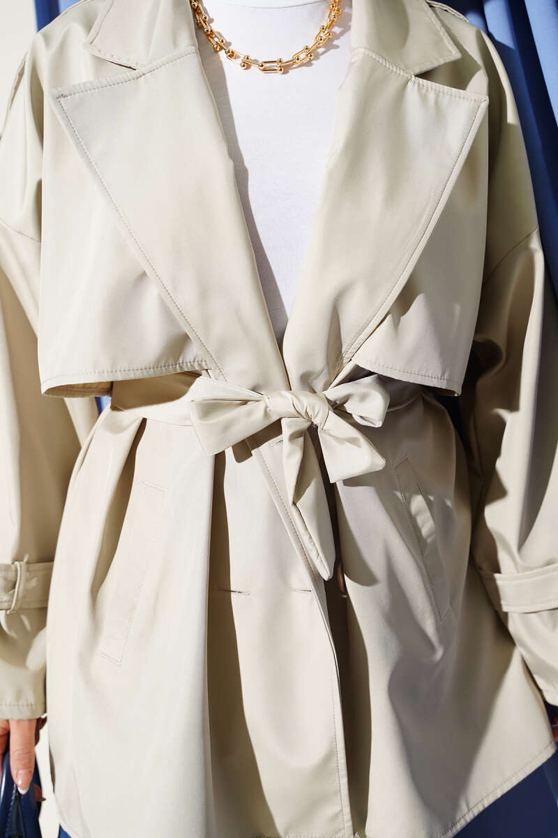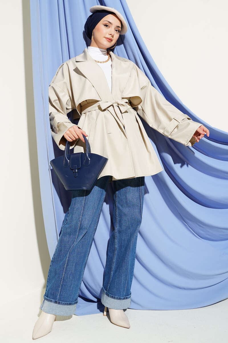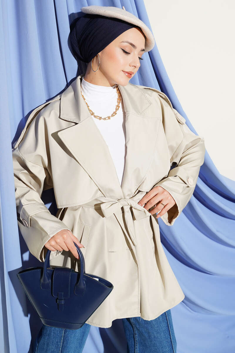 Omuz Apoletli Kuşaklı Trençkot Bej