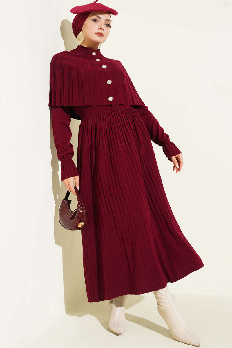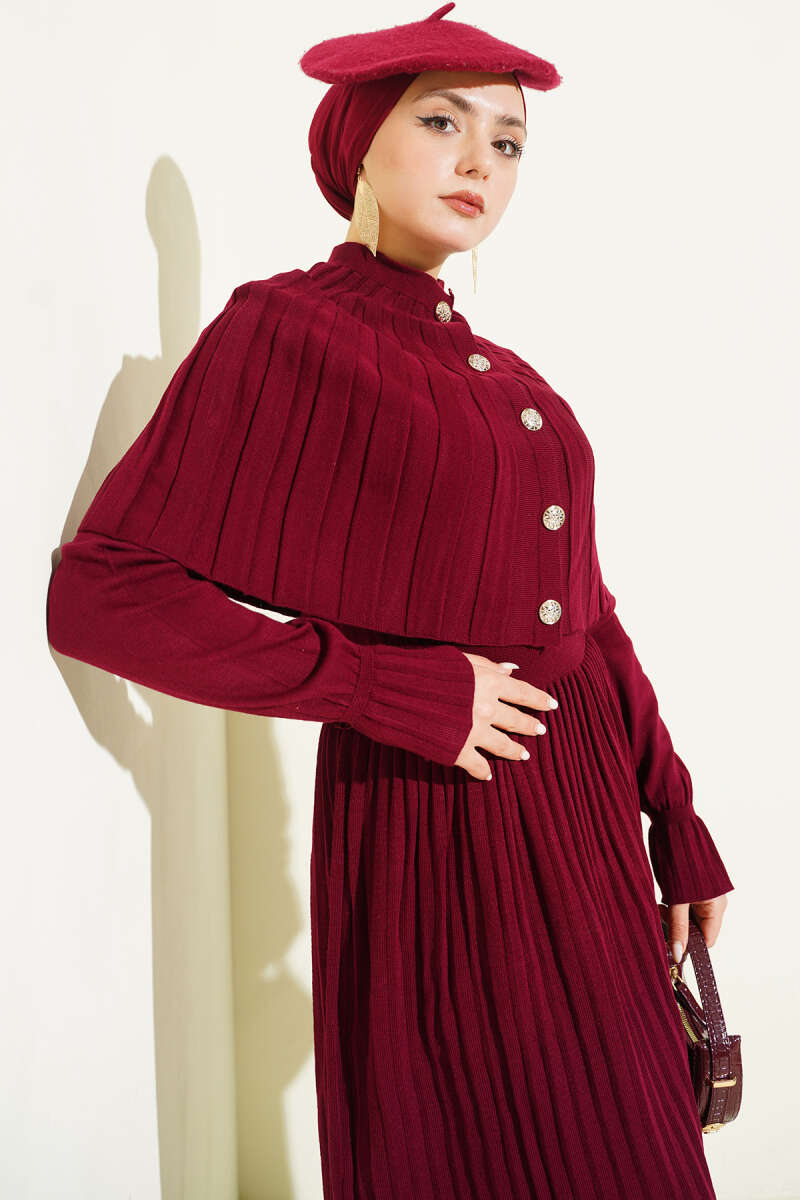 Pelerin Detaylı Düğmeli Triko Elbise Kahve