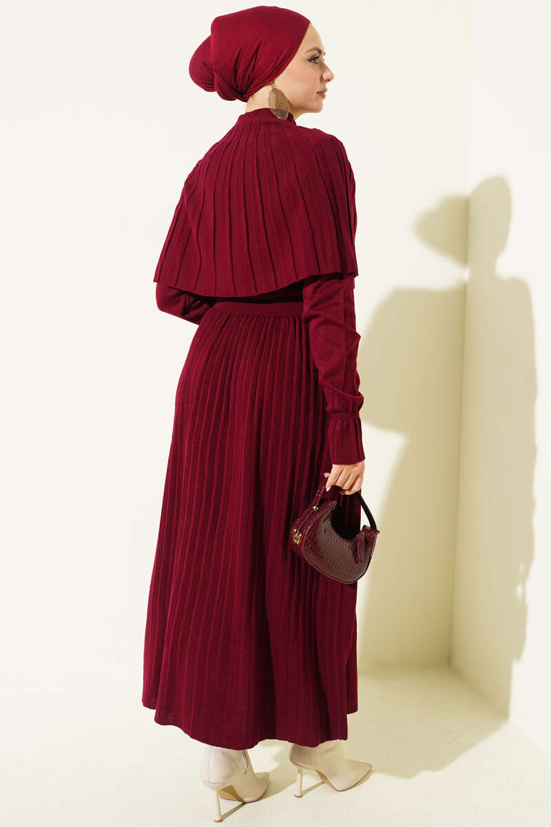 Dik Fitilli Kuşaklı Basic Elbise Bordo