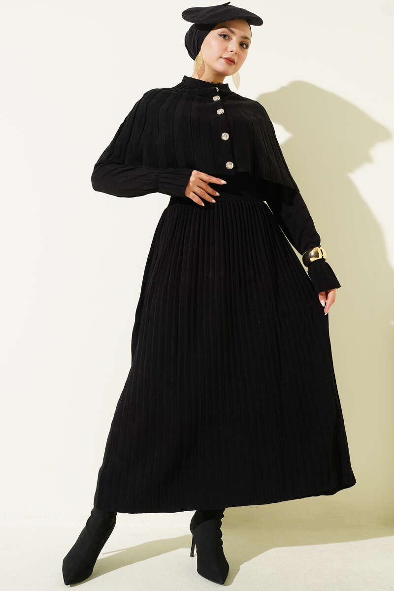 Sıra Taş Detaylı Loyşa İkili Takım Siyah