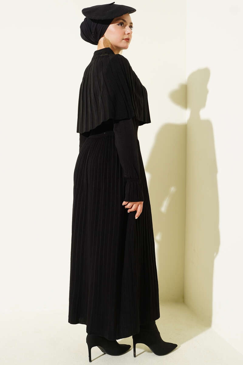 Pelerin Detaylı Düğmeli Triko Elbise Bordo