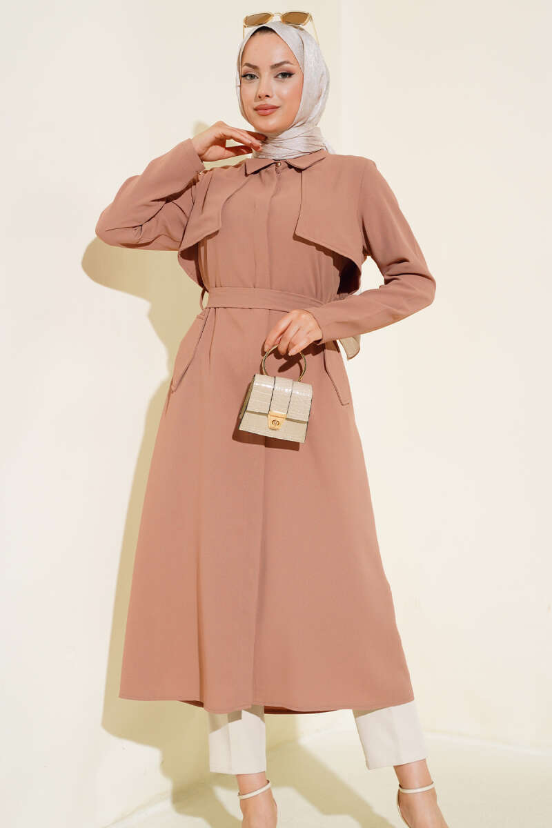 Bisiklet Yaka Sakal Detaylı Kazak Vizon