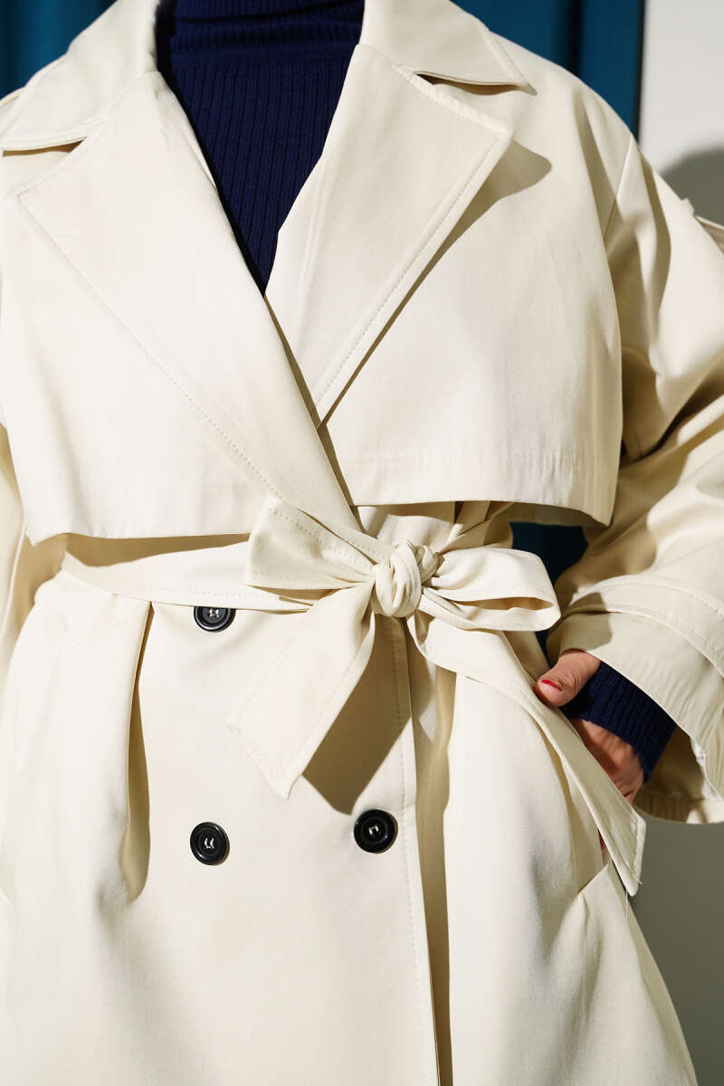 Pelerin Detaylı Kuşaklı Kısa Trençkot Bej
