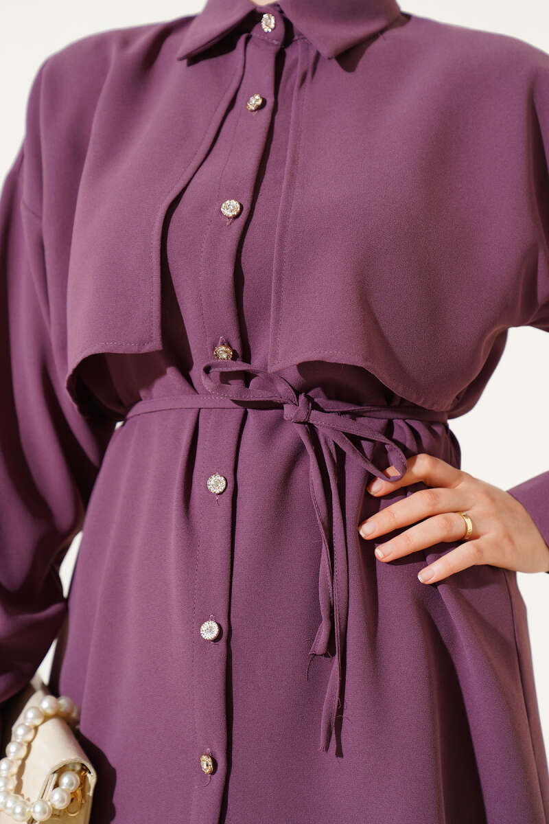 Pelerin Parçalı İp Kuşaklı İkili Takım Magenta