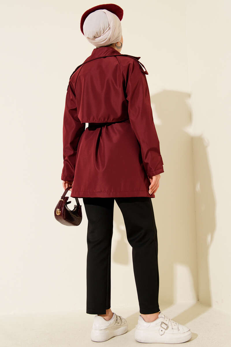 Süet Pelerinli Kuşaklı Trençkot Bordo