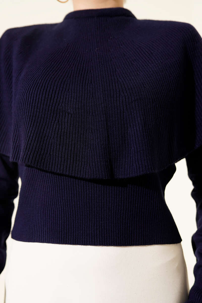 Pelerinli Fitilli Triko Kazak Bordo