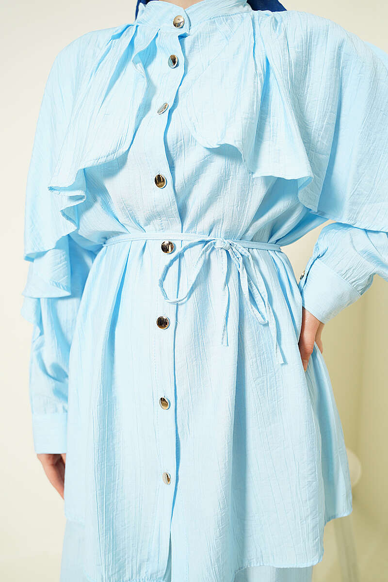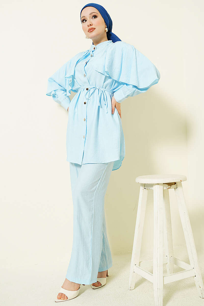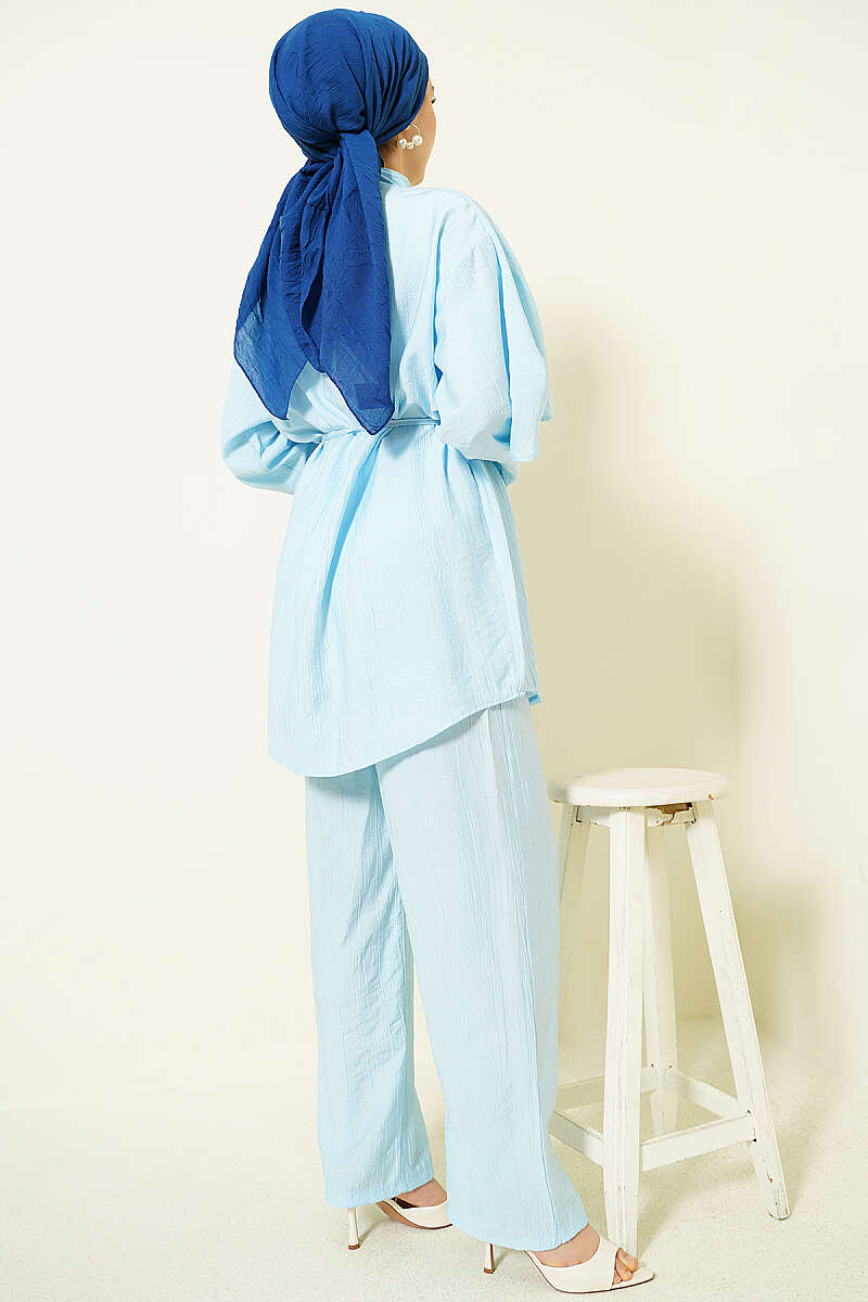 Tokalı Kemerli Kot Takım Açık Mavi