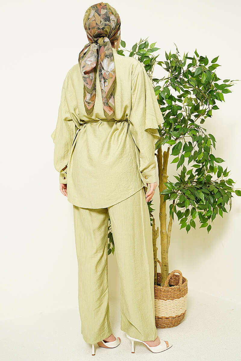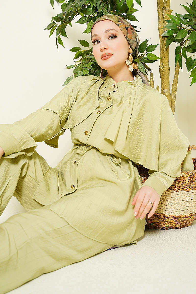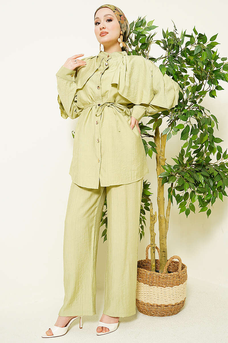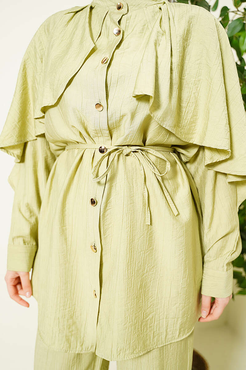 Pelerinli Gold Düğmeli Takım Çağla Yeşili