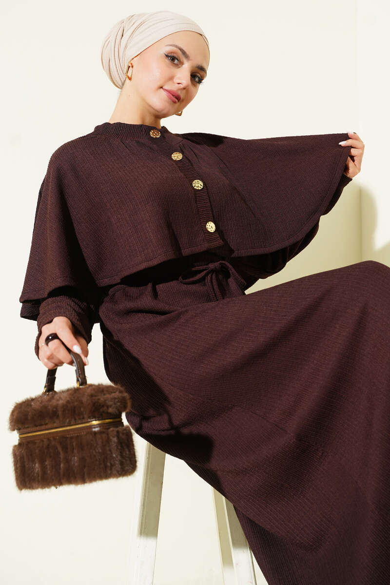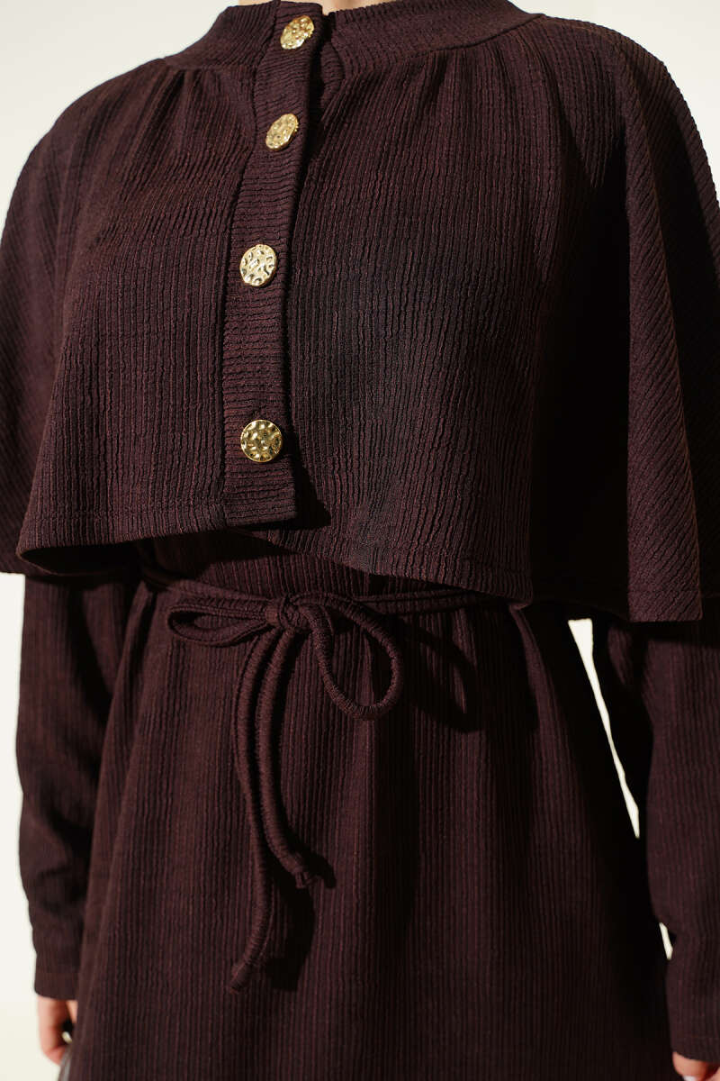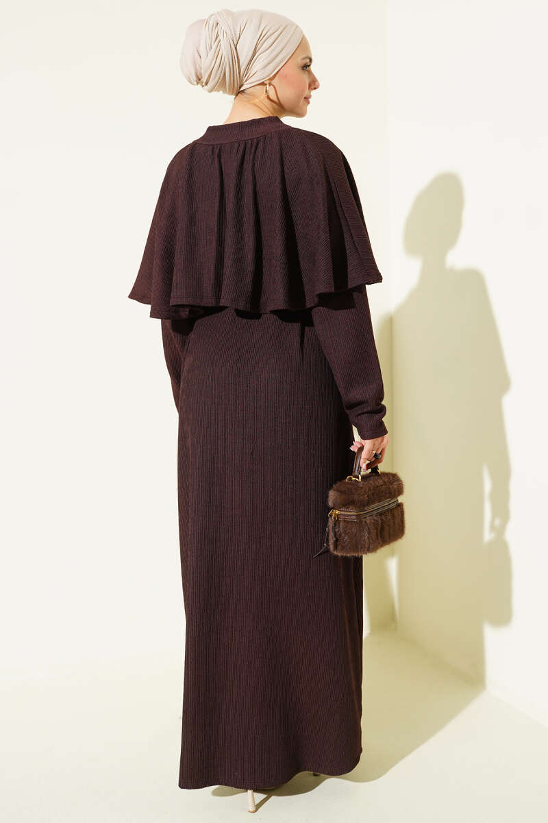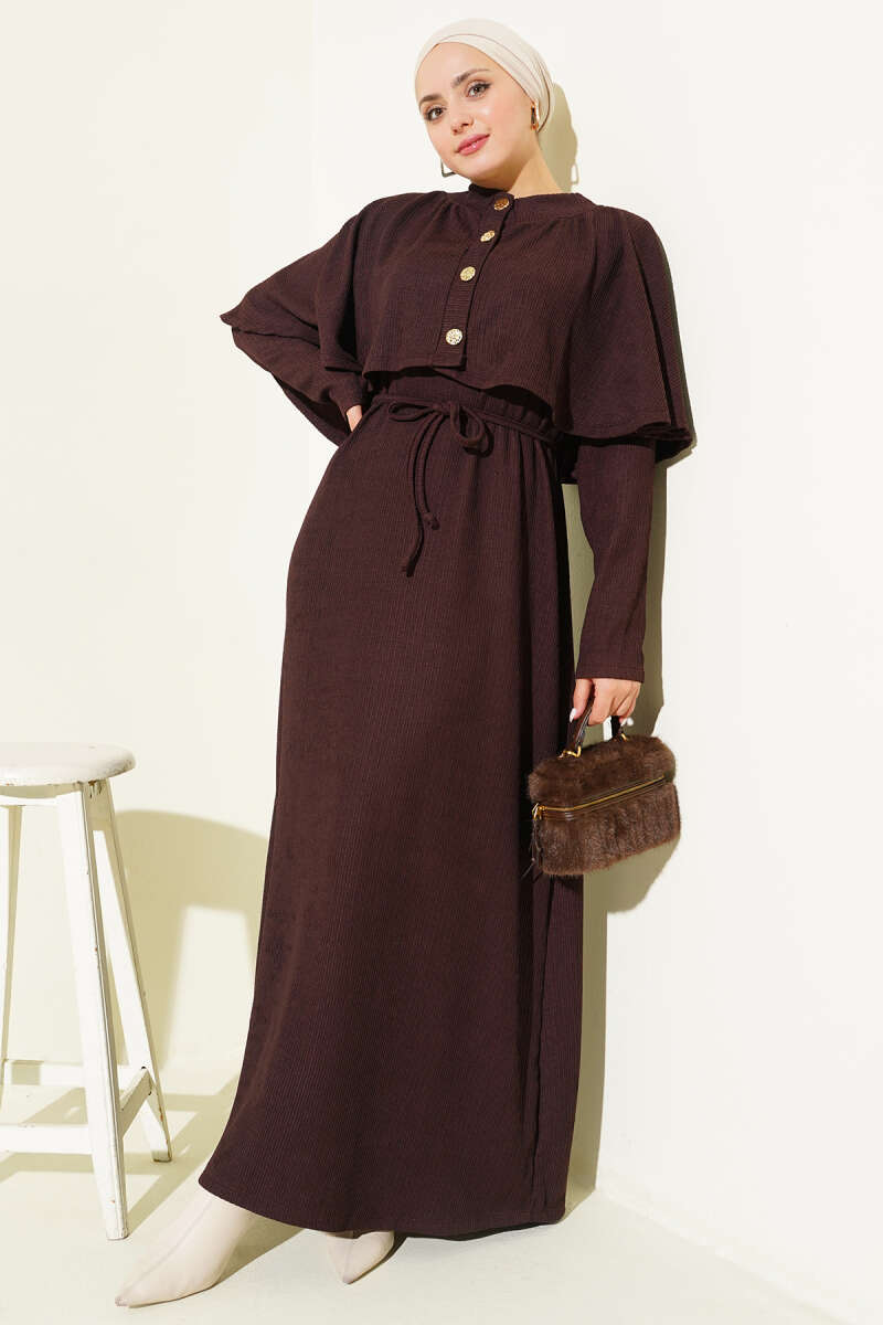 Kolları Fiyonk Detaylı Selanik Elbise Kahve