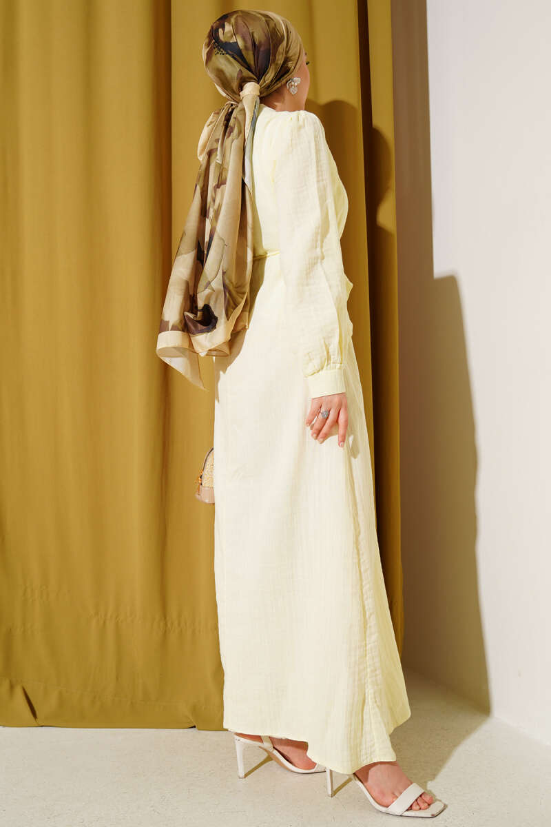 Pelerinli İp Kuşaklı Elbise Sarı
