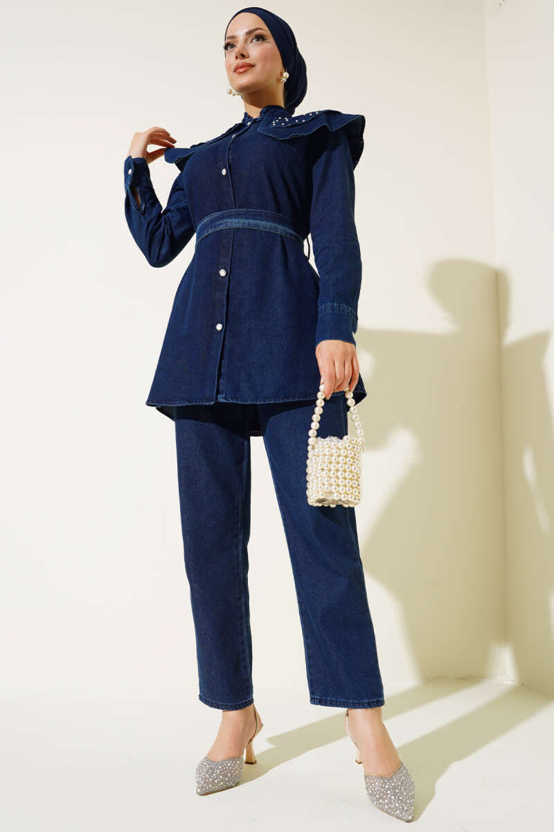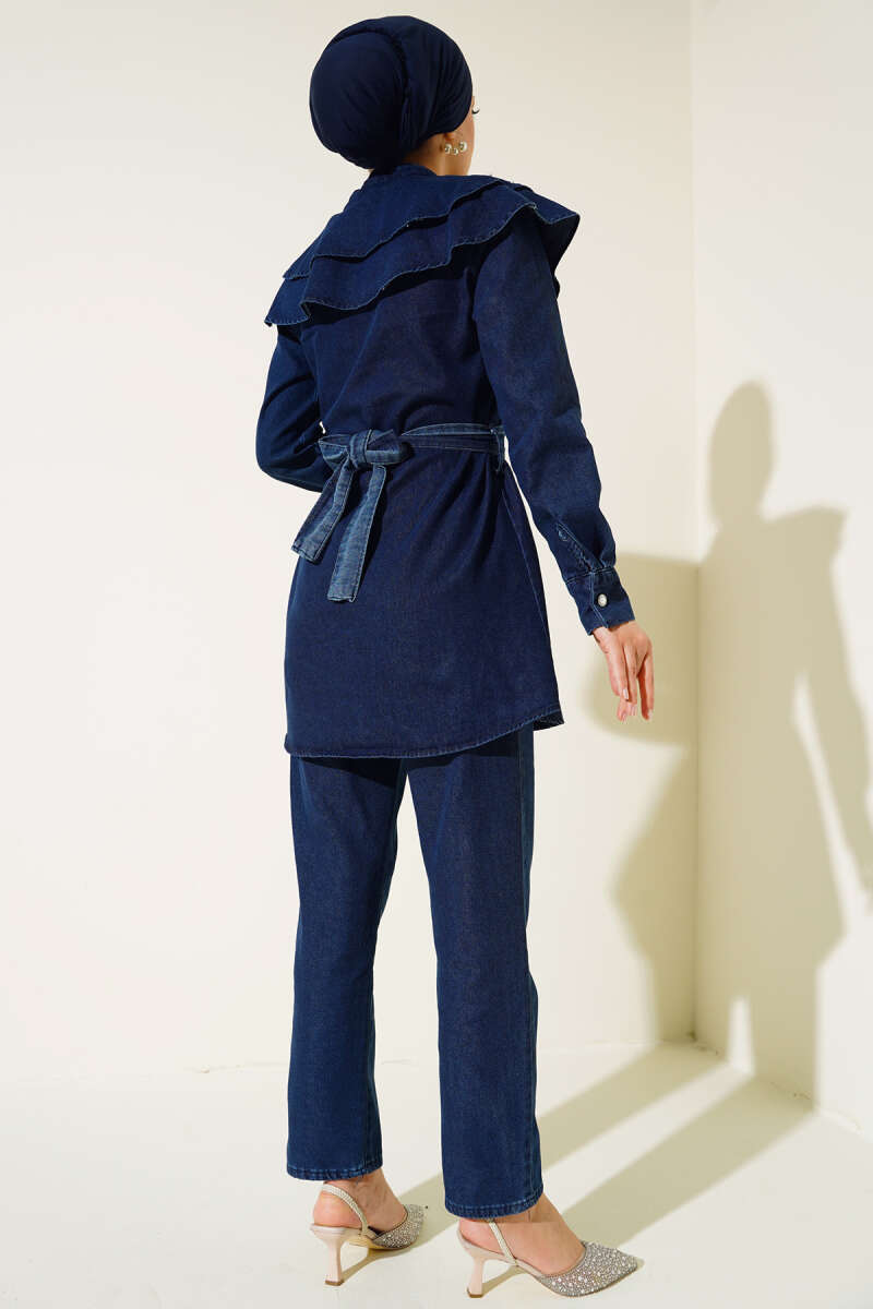 Pelerinli Kot İkili Takım Lacivert