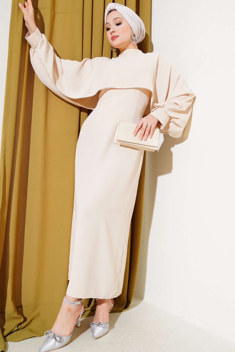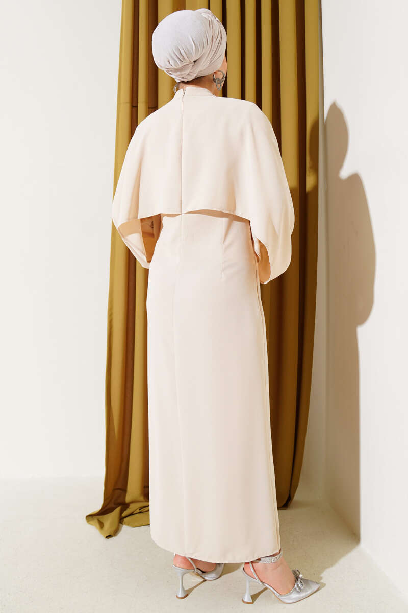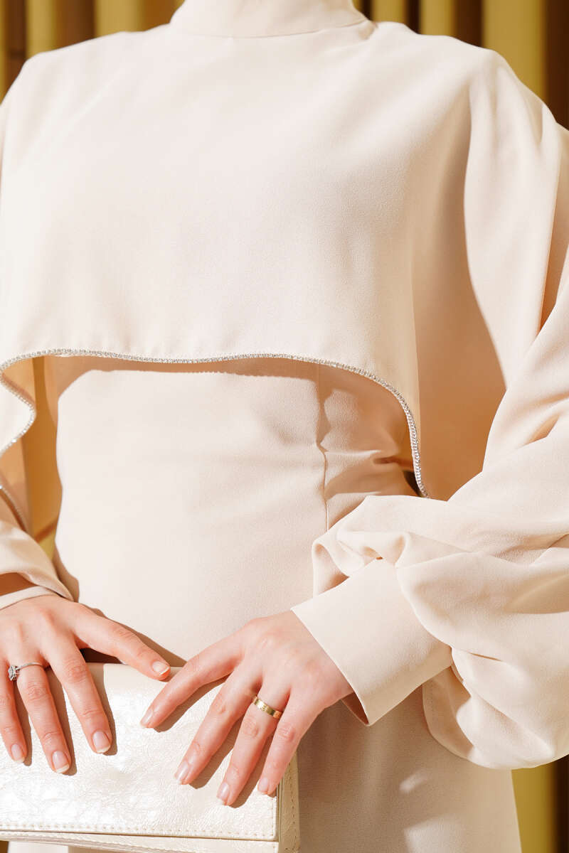 Scuba Pens Detaylı Kemerli Elbise Ekru