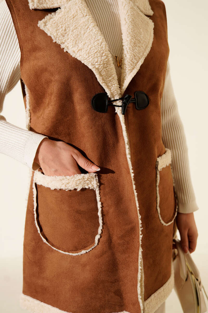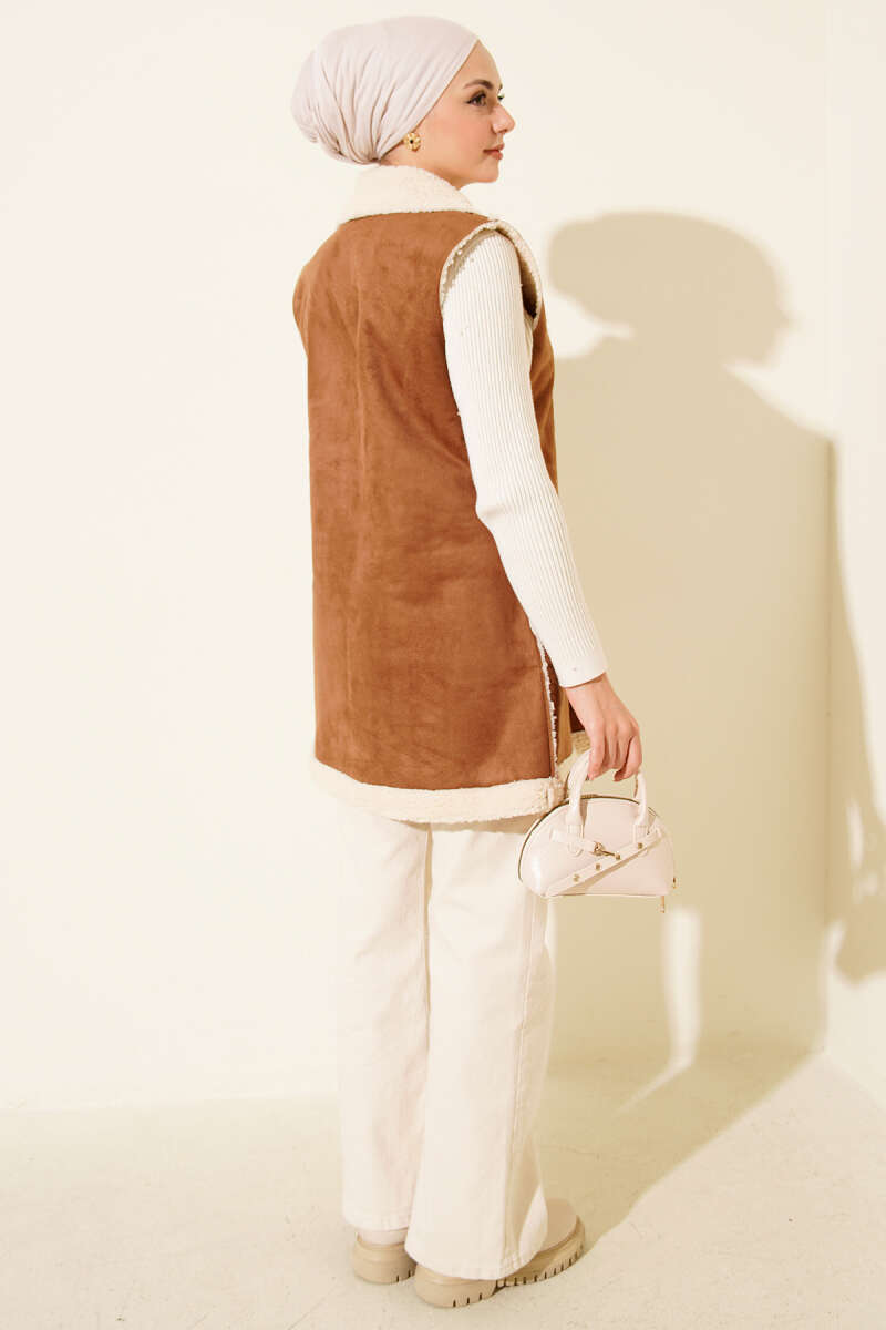 Peluş İçli Süet Yelek Acı Kahve