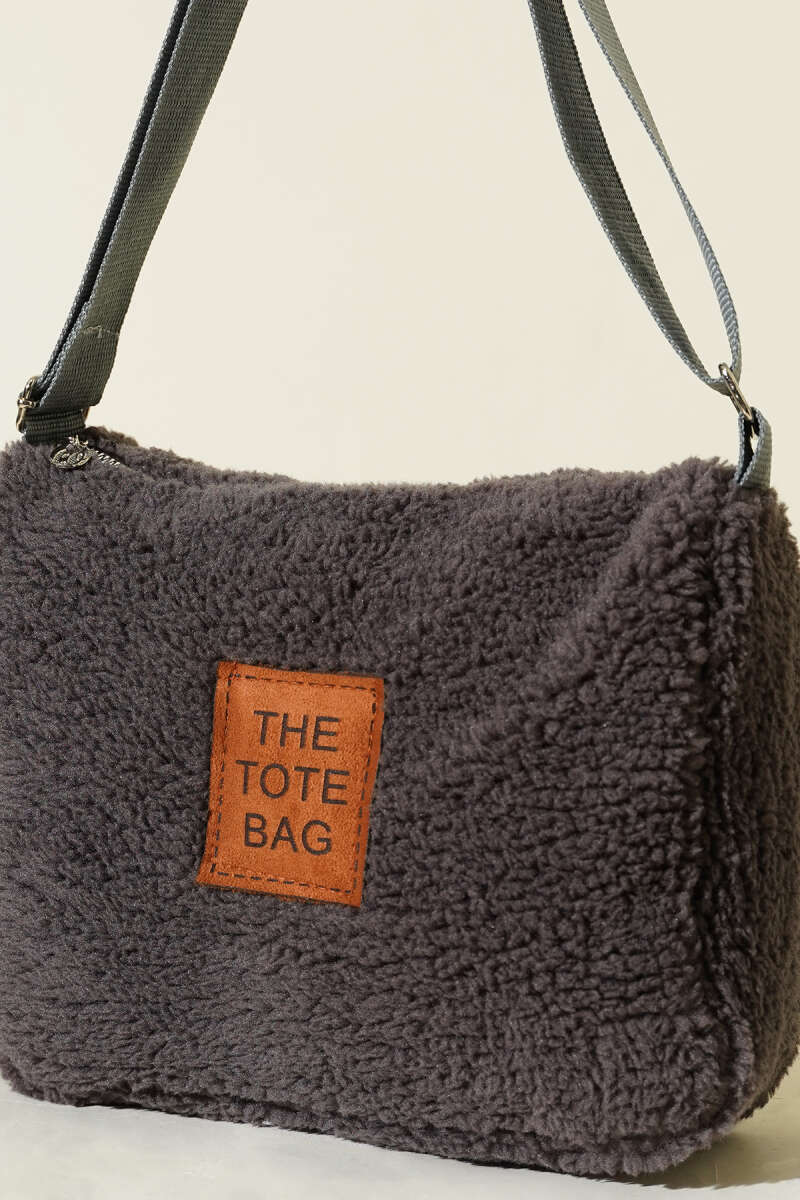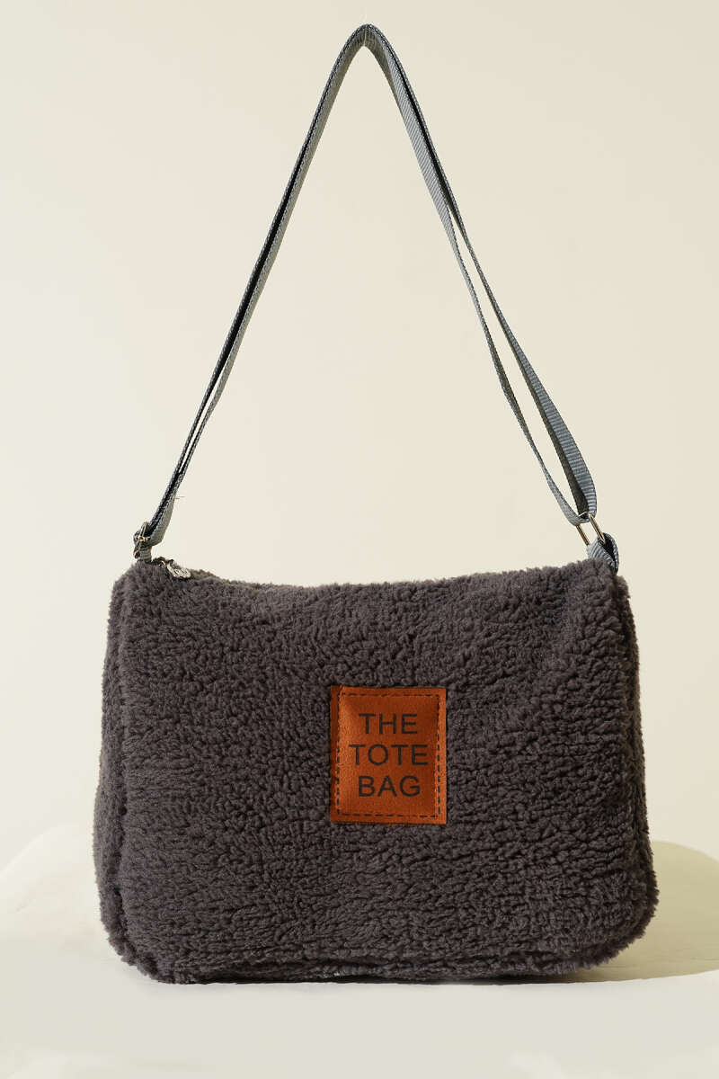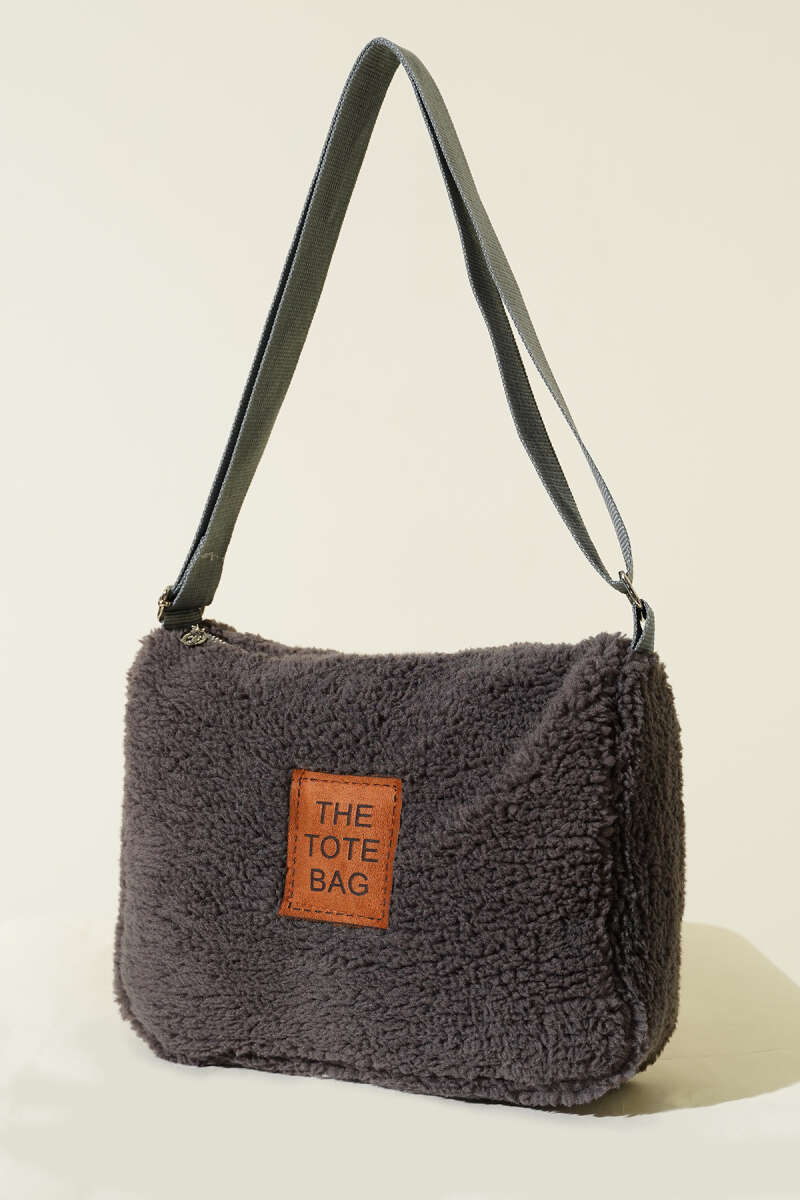Peluş Omuz Askılı Tote Çanta Beyaz