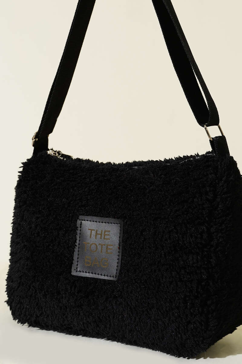 Peluş Omuz Askılı Tote Çanta Siyah Taba