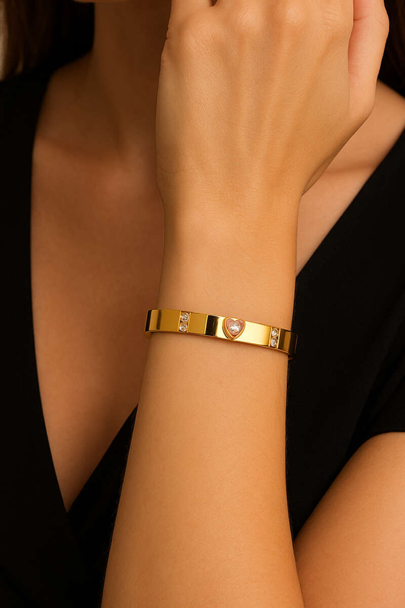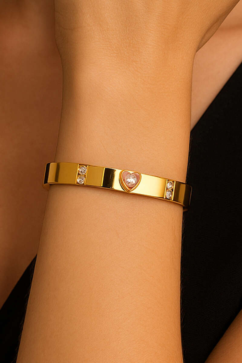 Çiçek Su Yolu Taşlı Bileklik Gold