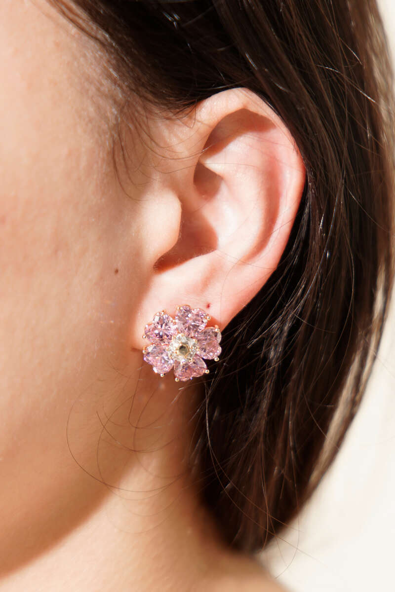 Pembe Safir Görünümlü Kalp Kesim Çiçek Küpe Pembe