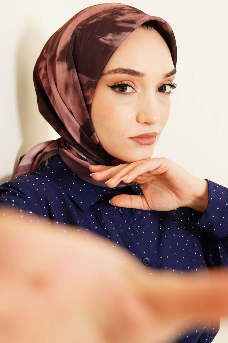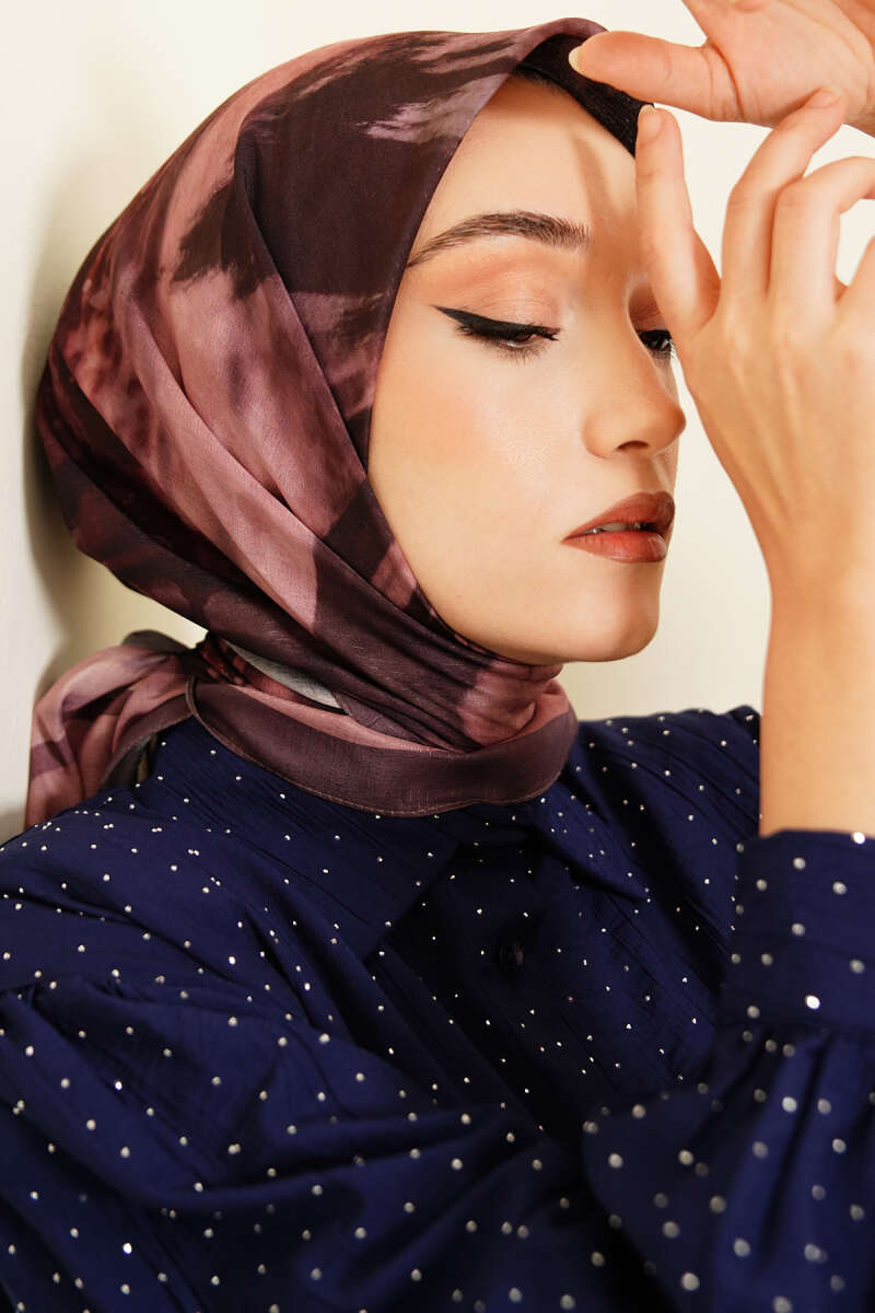 Eskiz Çiçek Desen Eşarp Mürdüm