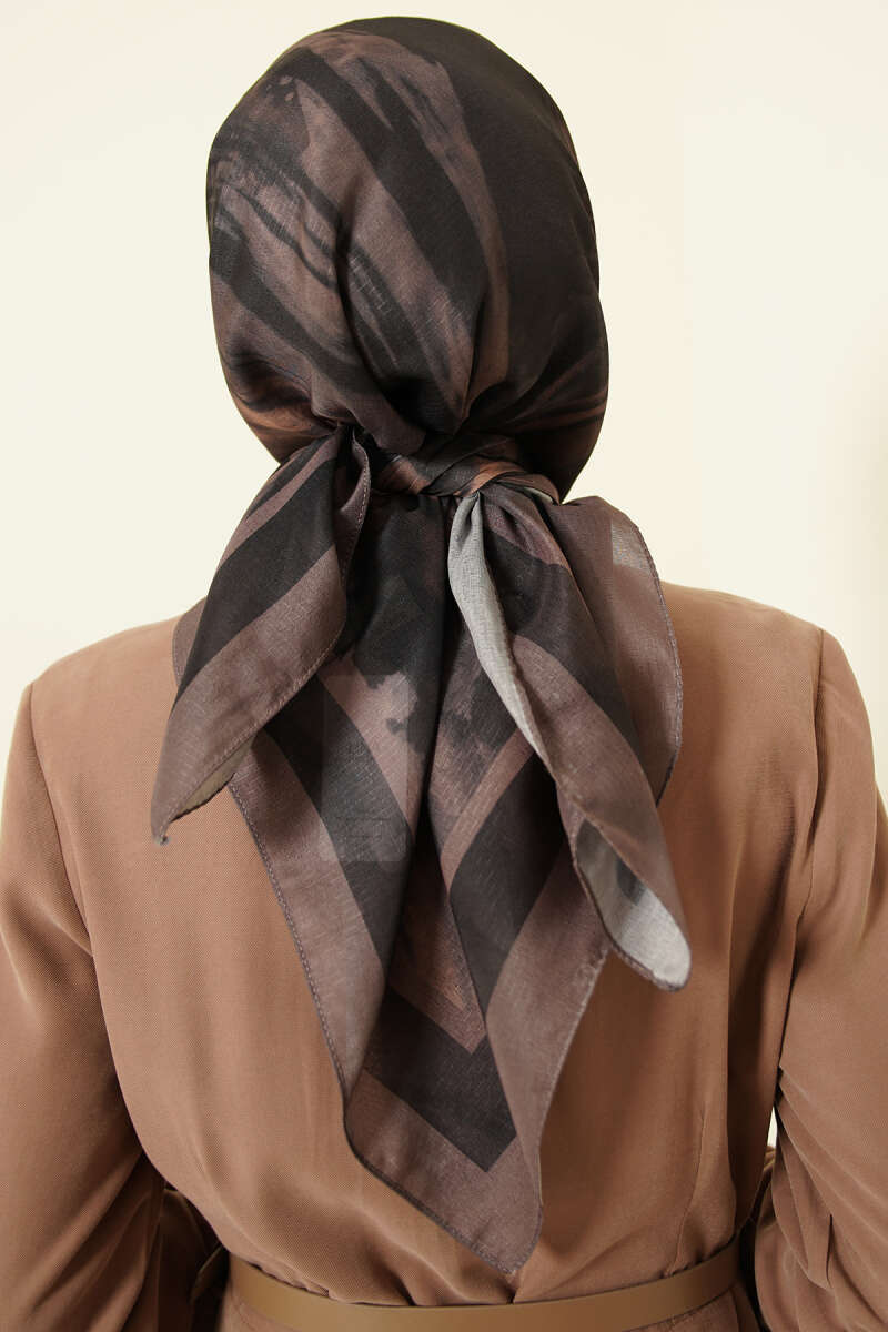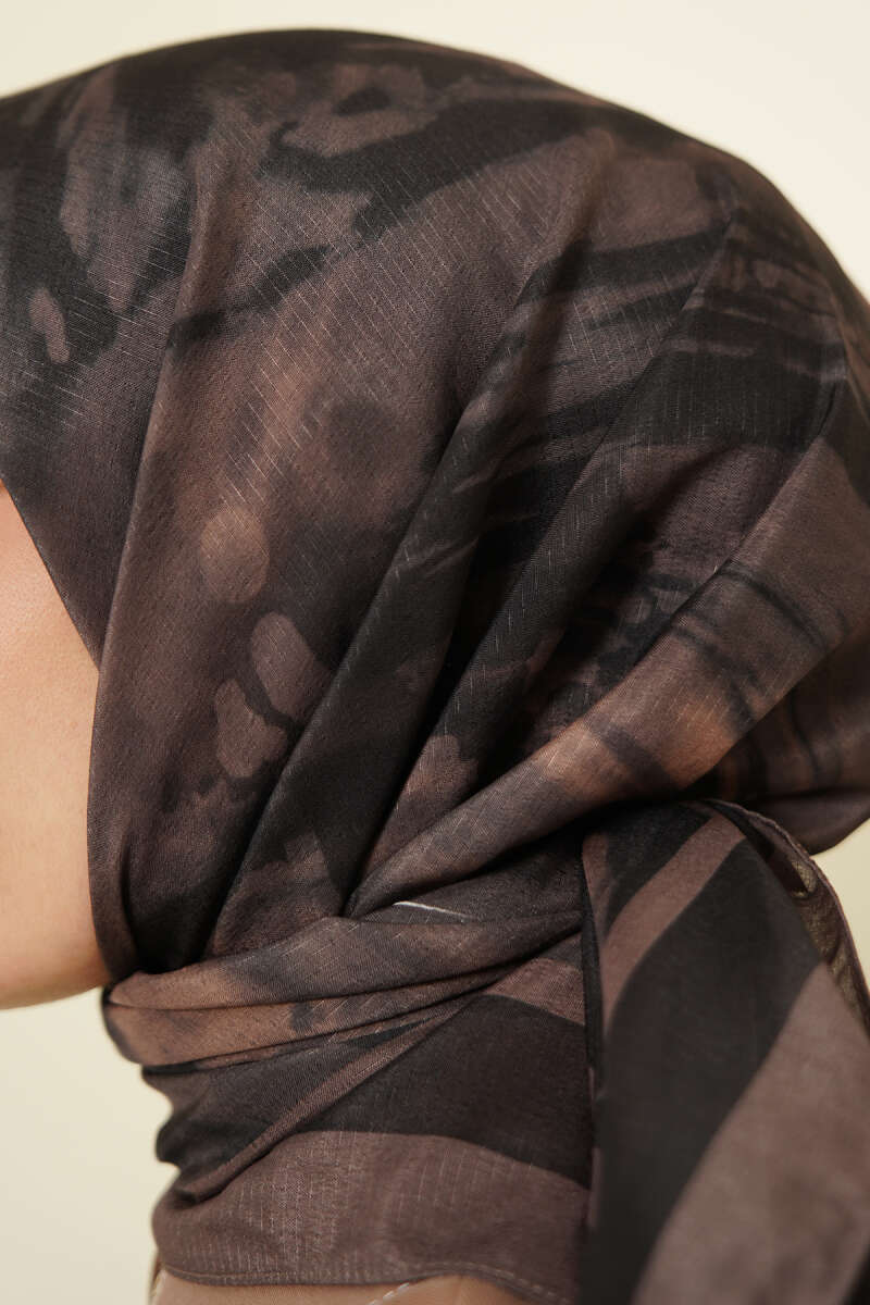 Eskiz Çiçek Desen Eşarp Siyah Bordo