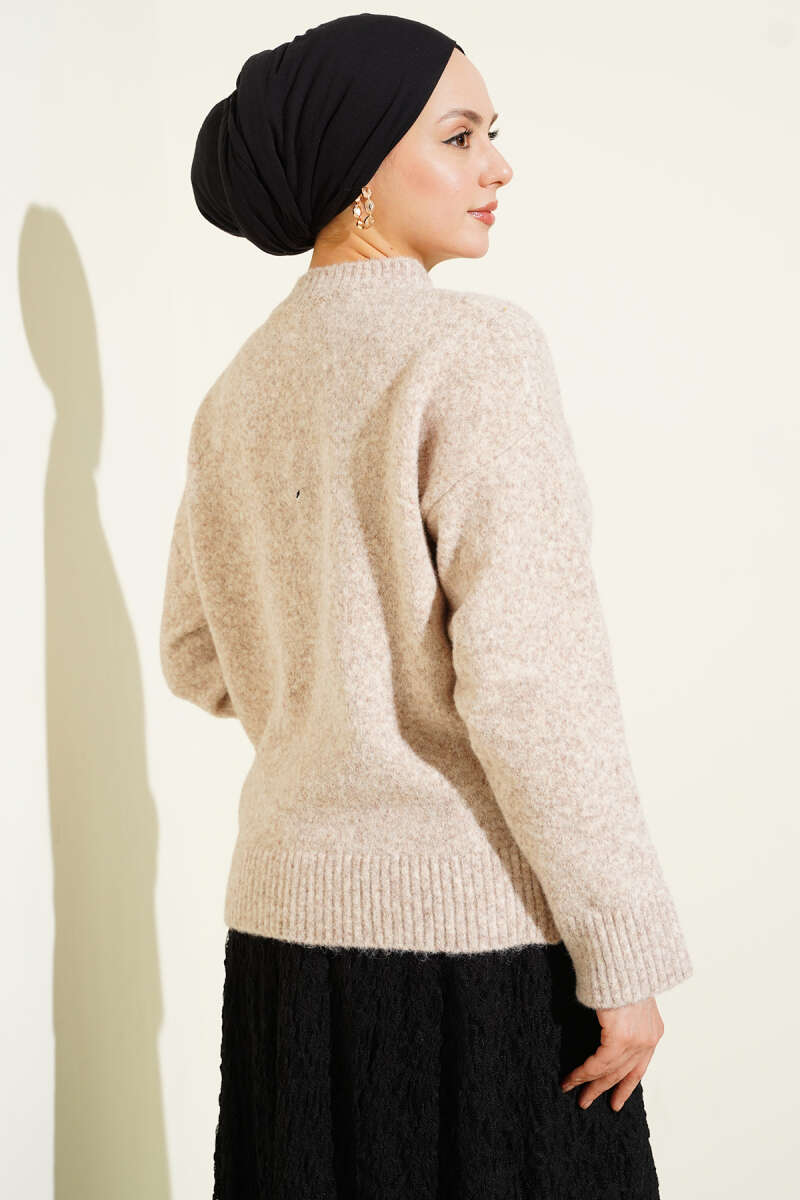 Fırfır Detaylı Düğmeli Triko Yelek Haki